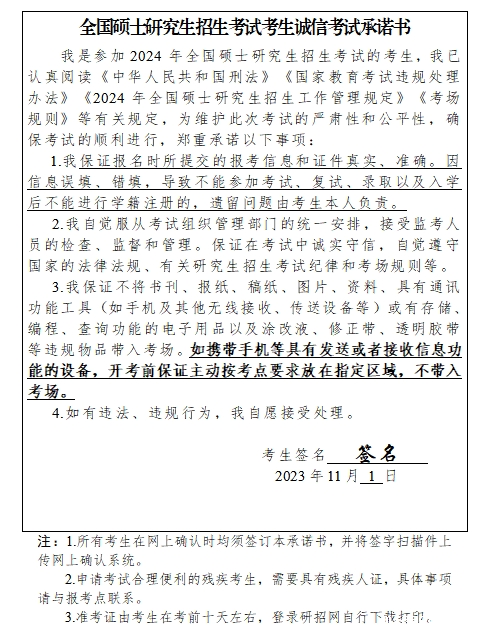 (一)必须提交考生本人签字的《诚信考试承诺书》(见附件1)。