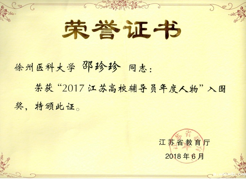 我校临床医学系李巧利同学当选“2017江苏省大学生年度人物”,实现了我校在此项评选活动中“零”的突破。医学影像学院辅导员邵珍珍老师荣获“2017江苏高校辅导员年度人物”入围奖。