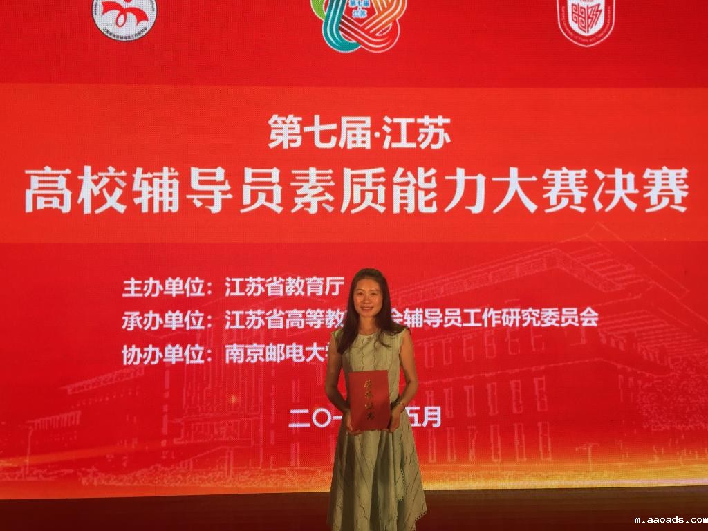 近日,第七届江苏省高校辅导员素质能力大赛决赛在南京邮电大学举行。我校医学影像学院辅导员邵珍珍老师参加决赛并荣获三等奖,实现了我校辅导员在此项大赛中晋级决赛的突破,展示了我校辅导员的素质能力和职业风采。