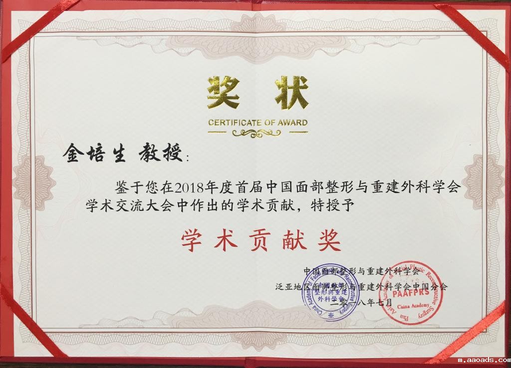 徐医附院团队负责大会“干细胞应用”版块,是干细胞临床应用首次亮相医美论坛。国内相关领域顶尖专家汇聚一堂,分享了干细胞治疗的研究进展、前沿技术及临床管理规范等学术内容。共组织了十场学术演讲,与会者对干细胞这项新技术表现出极大的热情,交流活跃,讨论热烈。徐医附院团队较高的学术水准和较强的组织能力得到大会认可,大会授予金培生教授学术贡献奖,并聘为国际整形美容外科学院特聘教授,金培生教授同时当选中国面部整形与重建外科学会常委。