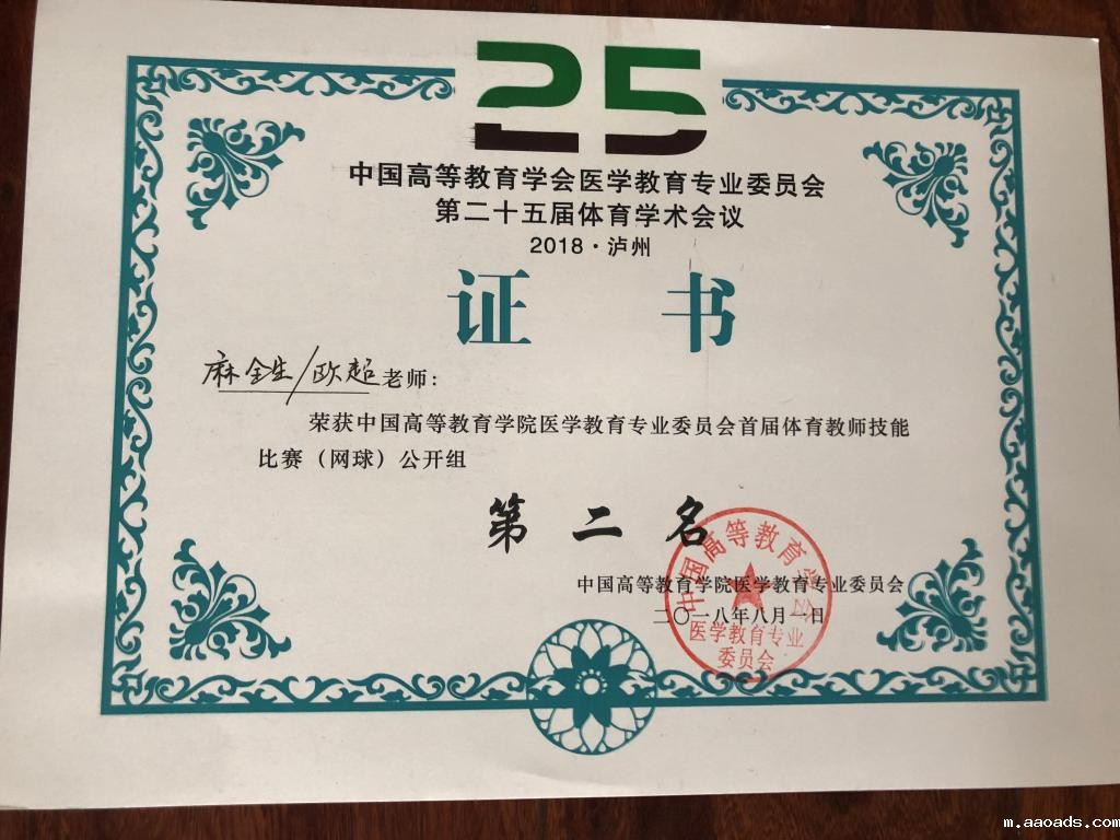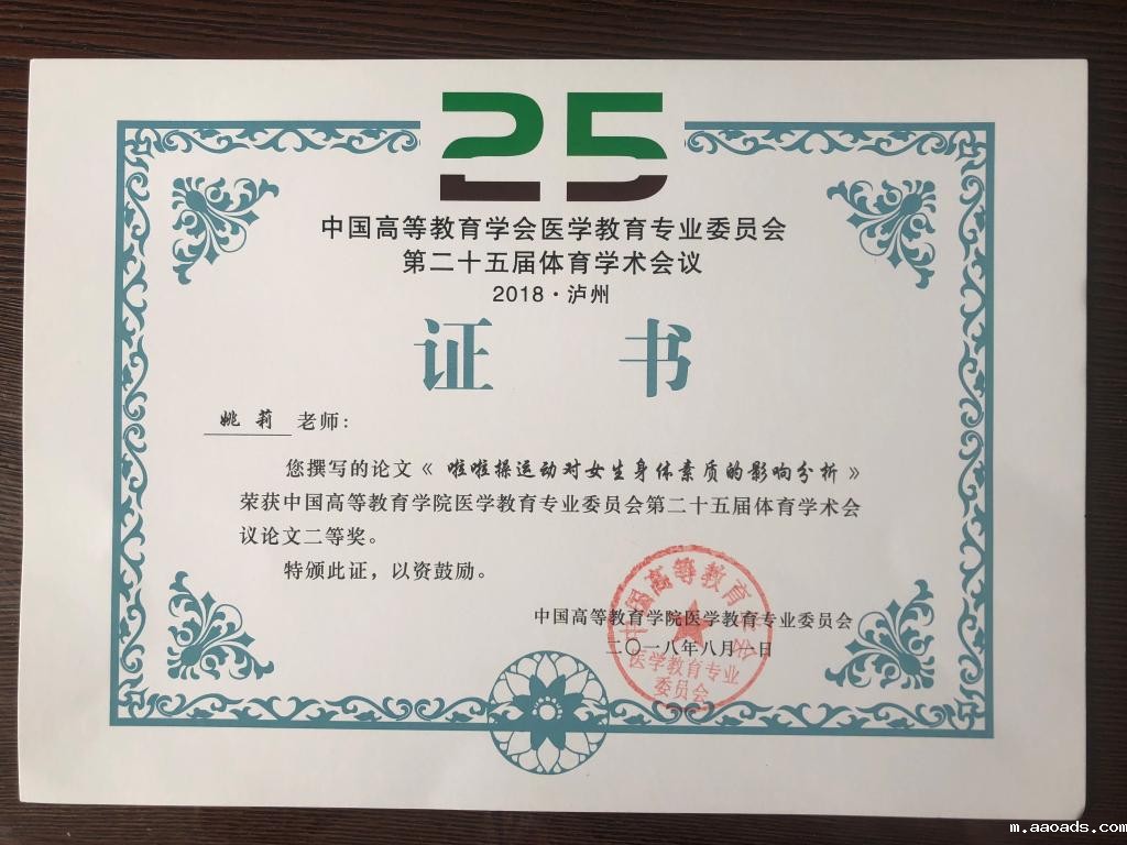 8月1日-5日,中国高等教育学会医学教育专业委员会第二十五届体育学术论文报告会及教师技能赛(网球)在西南医科大学隆重举行。我校共有6篇论文投稿本届论文报告会,其中姚莉老师的论文“啦啦操运动对女生身体素质的影响分析”获得二等奖,王东礼、杜晓侠、李小芳老师的3篇论文获得三等奖。