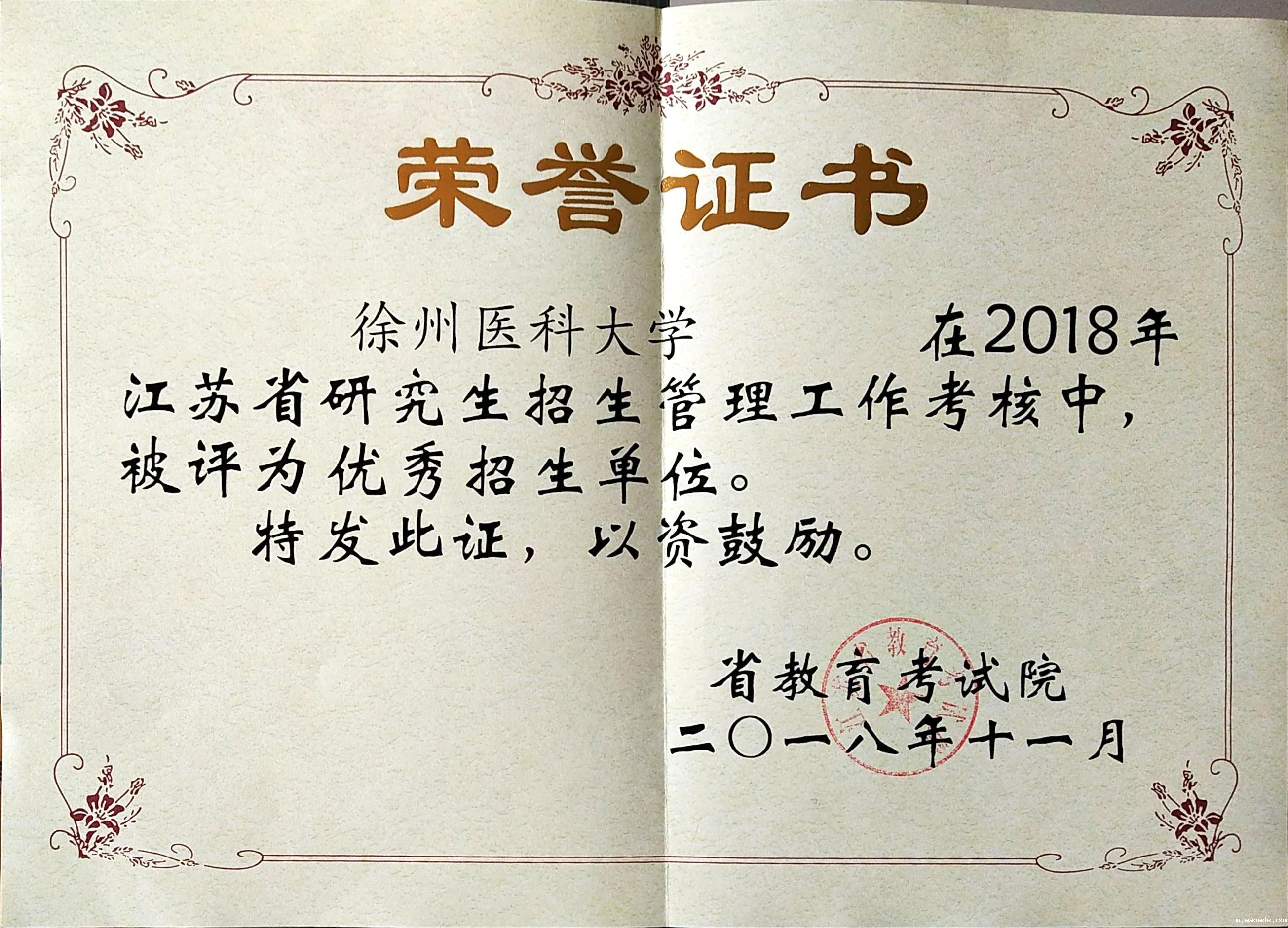 本次考核中,省教育考试院采取定量考核和定性考核相结合、年终考核和过程考核相结合、单位自评和考试院复评相结合的办法,对全省52个研究生招生单位进行了全面考核。近年来,学校按照教育部及江苏省教育厅的相关规定,严格执行研究生招生政策,建立健全招生和考务工作的规范化、制度化、科学化管理体系。在校研究生招生工作领导小组的高度重视和直接指导下,研究生学院全体工作人员本着公平、公开、公正的原则,克服困难,努力工作,圆满地完成了2018年研究生的招生工作任务,共计招收全日制研究生739人,其中硕士研究生718人,博士研究生21人。