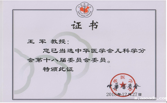 王军教授当选第十八届委员会委员体现了全国同行对我校儿科学整体水平的认可,同时也是对我校推动淮海经济区儿科事业发展所取得成绩的充分肯定。