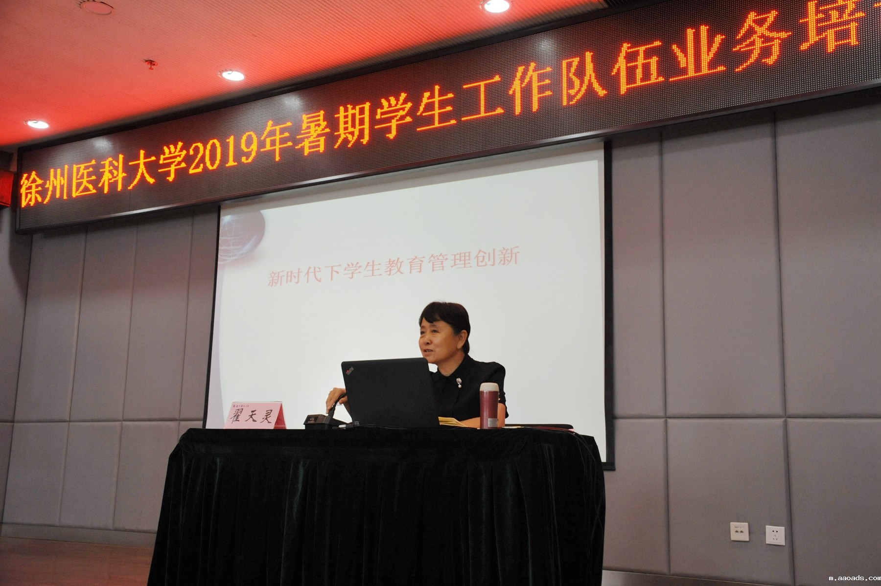 在7月15日培训开场讲话中,校党委夏有兵书记以“持正笃行 不忘初心”为主题,从自身早年从事学生工作的经历,结合辅导员班主任的重要性与历史地位,阐述了辅导员班主任在学生成长成才过程中的重要性,并从持正与笃行两个角度,对学生工作队伍提出了八点希望与要求。南京艺术学院党委副书记翟天灵围绕新时代背景下高校学生教育管理工作创新,从工作理念、工作热点与重点、网络文化与大学生发展规划实施的必要性、目标、优势等做了精彩论证。7月16日,校党委副书记、副校长徐海波以学生工作部前期工作调研结果与反馈,对学生工作提出了“围绕学生成人、成长、成才、成功——培养德智体美劳新时代医学人才”的工作目标,要求学生工作者秉承“高站位(高度)、有情怀(温度)、求实效(厚度)”的工作理念,坚持以学生为主体,建立系统内联动、部门间联席、校际间联盟、家校间联通的协同共进机制,全力以赴做好学生工作,形成学生工作的育人合力。共青团江苏省委组织部陈文娟部长以《新时期高校共青团工作》为题,重点讲述了新时期高校共青团工作的任务与开展共青团工作的方法。