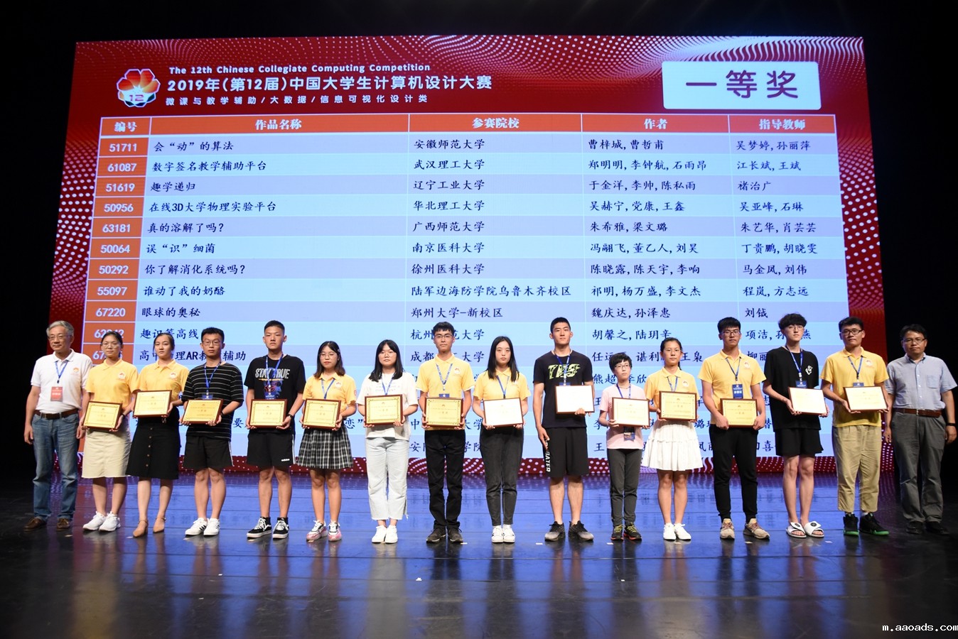 7月22日至26日,第12届中国大学生计算机设计大赛在北京大学举行。由我校医学信息与工程学院马金凤、刘伟老师指导,2017级药学院陈晓露、生命科学学院陈天宇、李响同学创作完成的作品《你了解消化系统吗?》,在微课与教学辅助类全国总决赛中荣获一等奖。