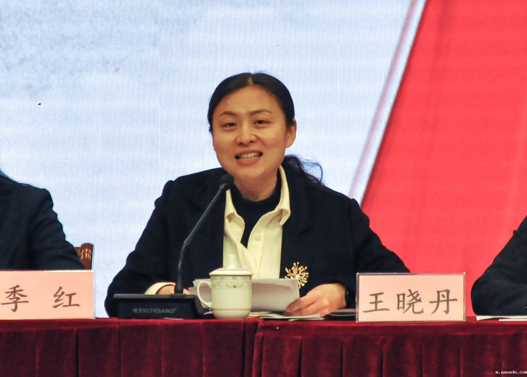 市妇联副主席王晓丹讲话。她指出,高校要建立建强妇联组织,促进妇联组织的协作共振。通过加强思想引领,提高服务意识,强化能力建设,为广大妇女同志建功立业搭建平台,形成具有高校特点的妇女工作品牌和亮点。