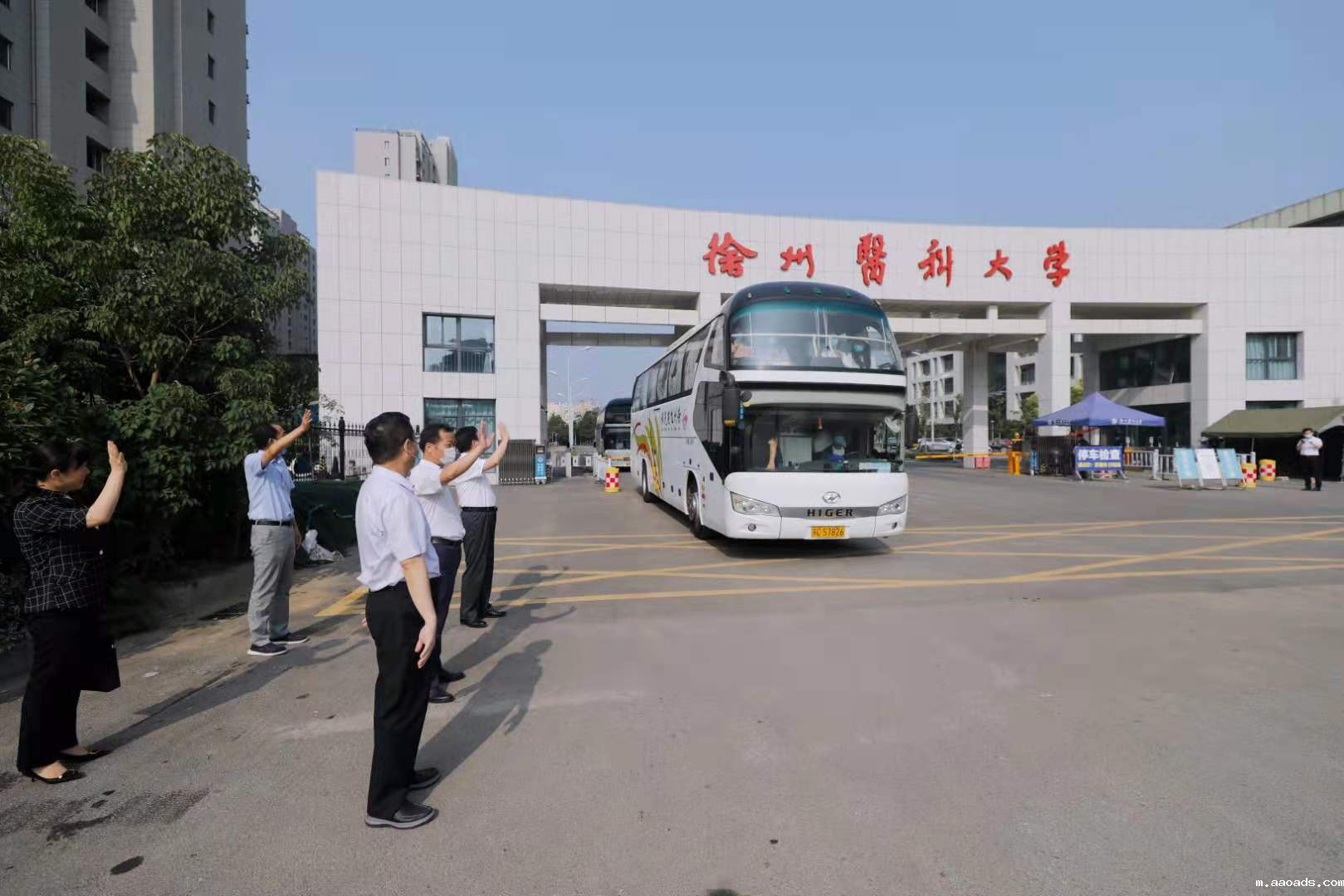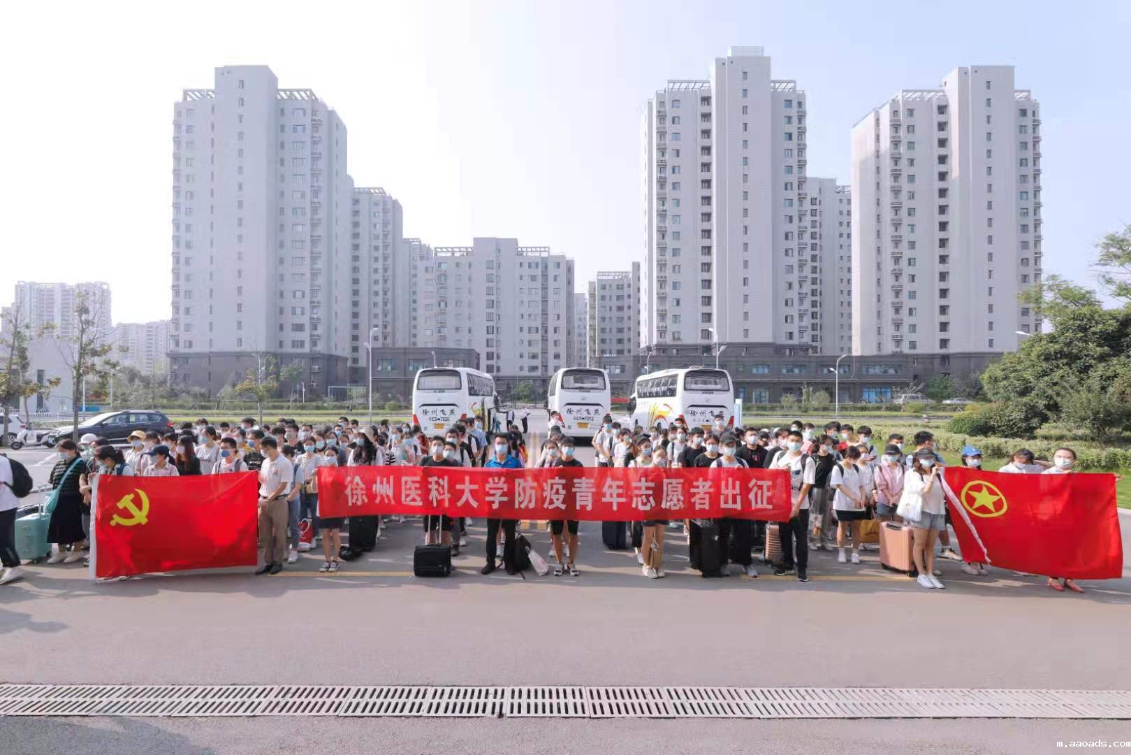 8月18日清晨,我校147名师生组成的防疫青年志愿者团队在完成校内核酸检测后,前往徐州市经济技术开发区支援全员核酸检测应急演练。学校为志愿者举行出征仪式,校党委书记夏有兵,校党委副书记、副校长徐海波,副校长曹君利,相关部门负责人出席活动。出征仪式由学生工作部部长陈玮主持。