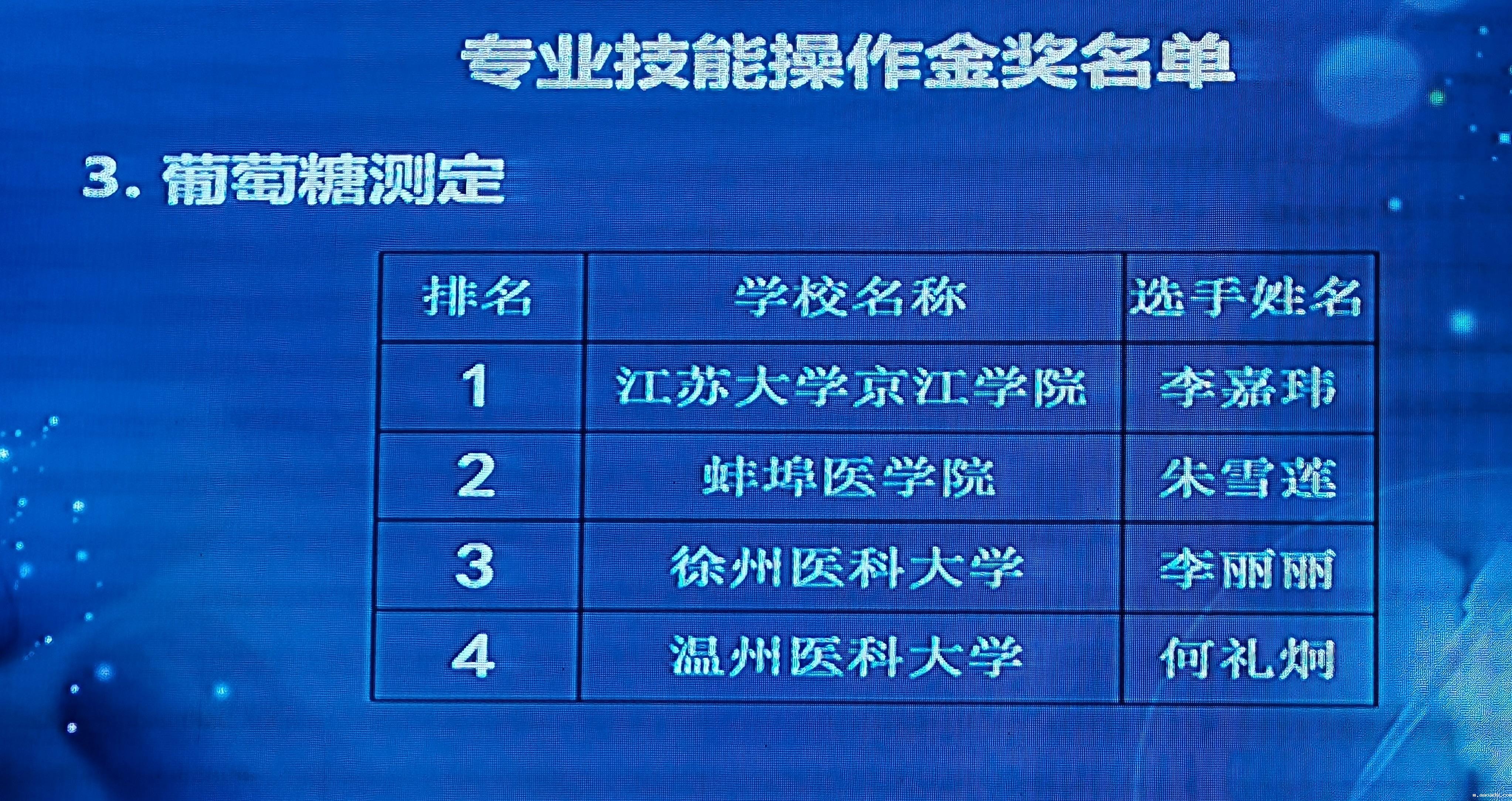 本次专业技能大赛分为专业技能操作和综合专业知识竞赛两部分。专业技能操作包括:血型鉴定、细菌平板分离划线及革兰染色、GOP- POD法测定葡萄糖等三项目,重点考察操作的规范性、细节性和生物安全意识。综合专业知识竞赛重点考察选手的知识广度和熟练程度。备战期间,指导老师康海全、孙静芳、孙宁娜、杜高飞四位老师认真负责,抠细节、找资源,给参赛同学全面细致的指导。