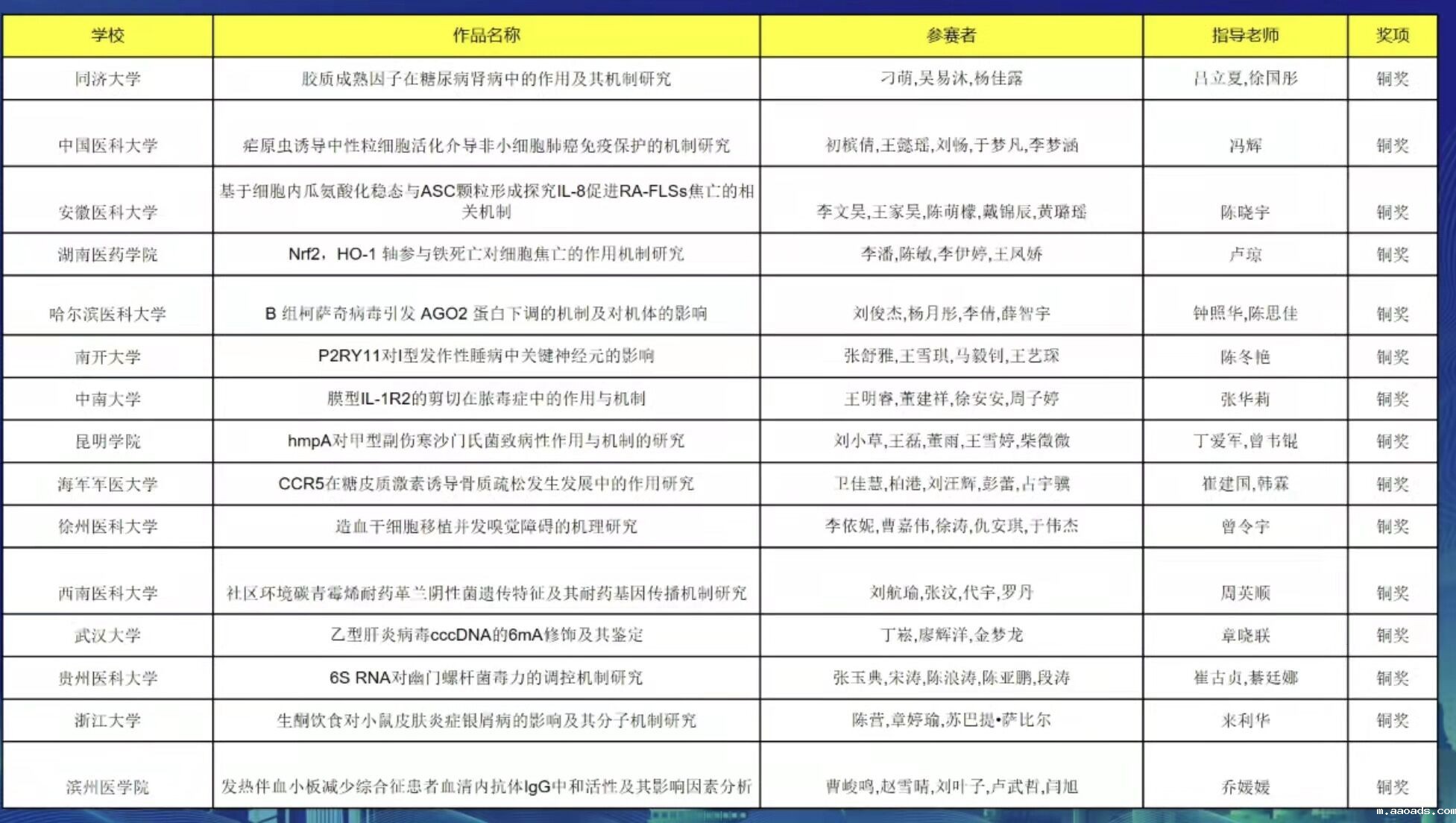 全国大学生基础医学创新研究暨实验设计论坛旨在全面贯彻全国教育大会精神,深入落实国家关于加快医学教育创新发展意见要求,聚焦新医科背景下尚德精术卓越医学人才的培养目标,充分展示当代大学生勇于创新、科创报国的时代风貌,搭建大学生多学科整合、全方位合作、稳准狠突破、具有转化潜力的高水平大学生科研平台。本次论坛从1003项作品中遴选了306项入围总决赛参加线上答辩,内容涉及消化、泌尿、生殖、内分泌、神经系统、精神疾病,医学免疫学、医学病原生物学、肿瘤学、综合与交叉学科等多个学科领域。