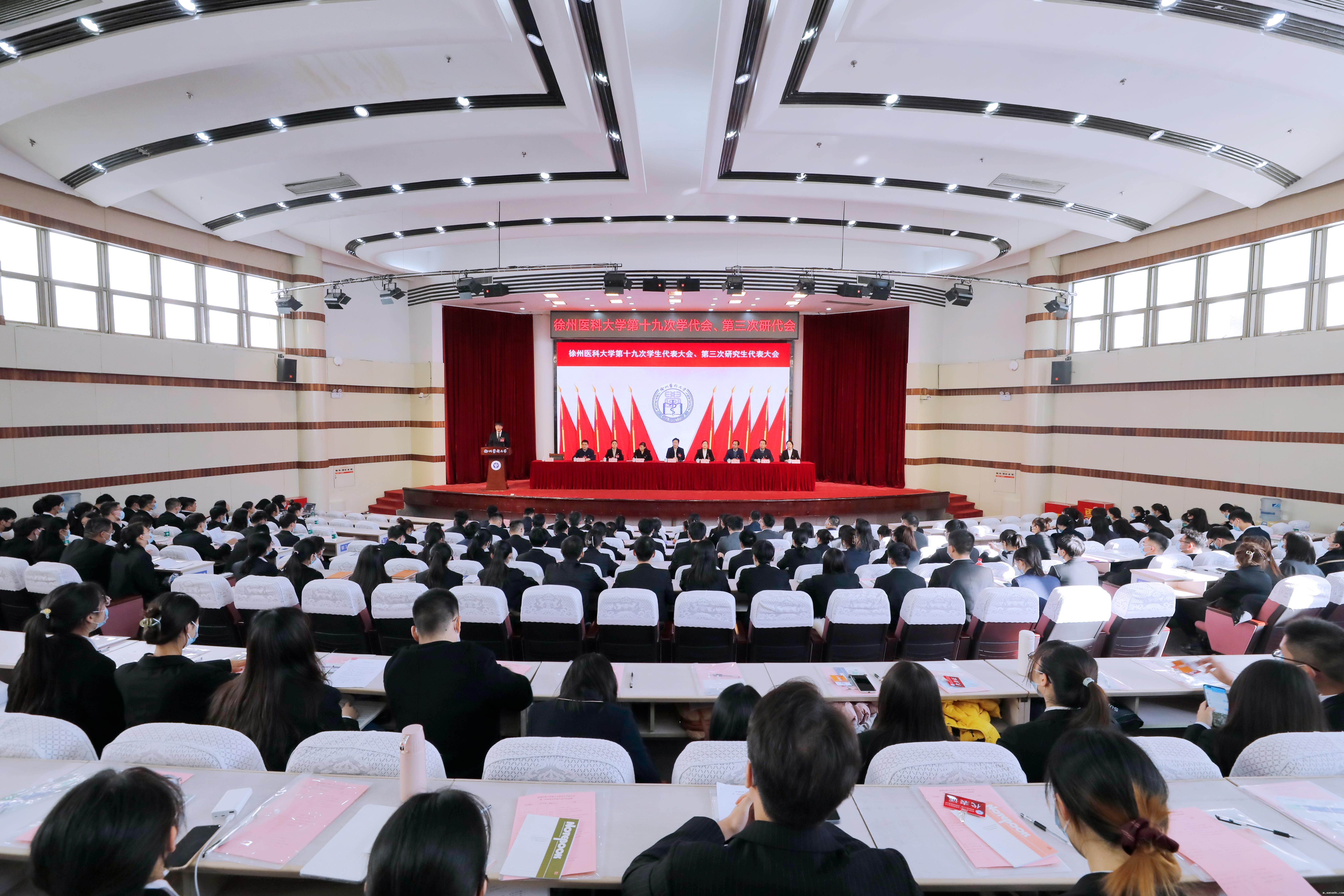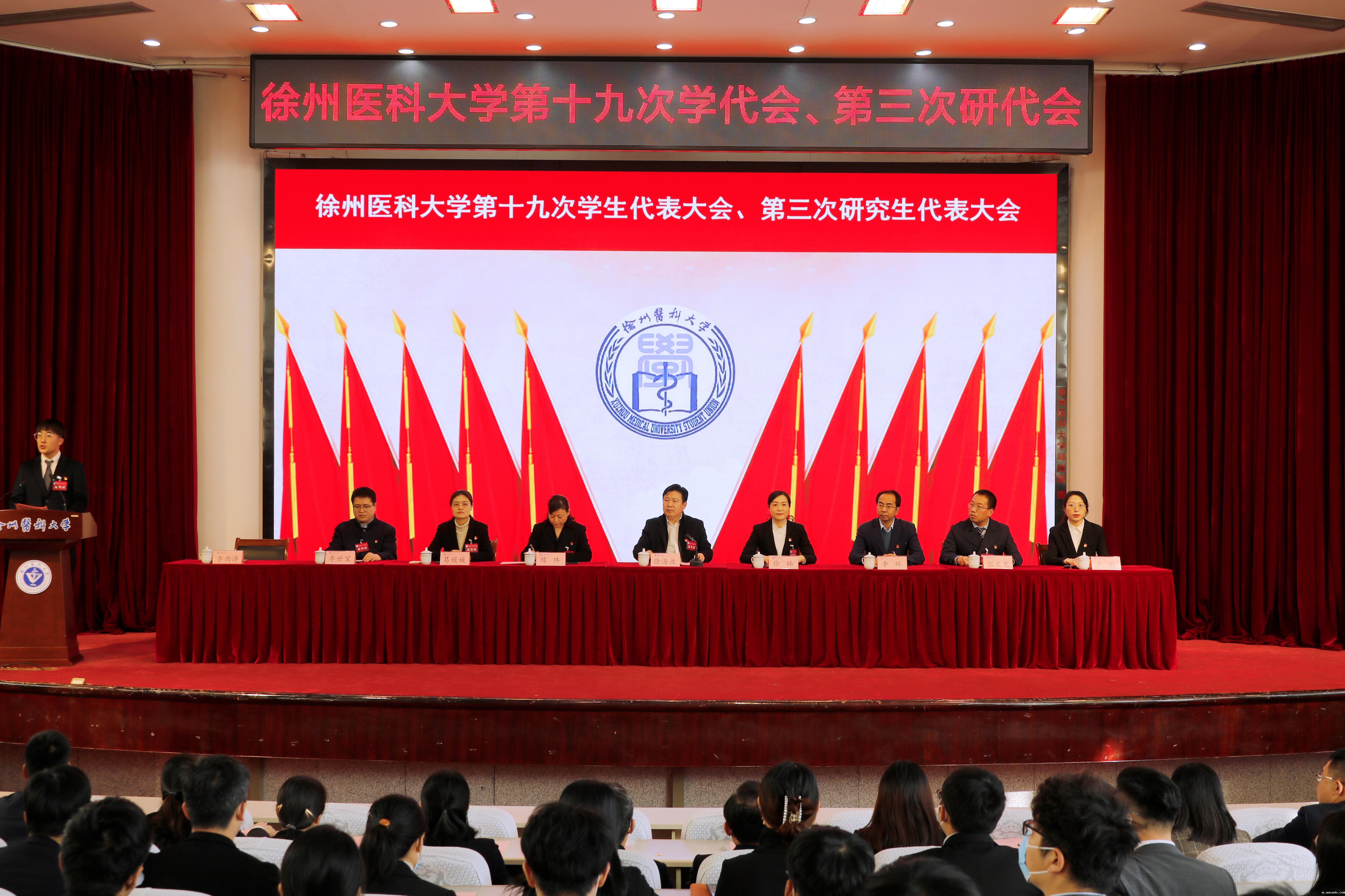 未来,我校各级学生会、研究生会组织将以本次学代会、研代会为契机,高举习近平新时代中国特色社会主义思想伟大旗帜,贯彻宣传党的十九大以来中央决策部署和习近平总书记系列重要讲话精神,坚守初心深化改革,勇担使命砥砺前行,团结带领好全体徐医青年,在建设高水平医科大学新征程中逐梦远航,在建设有中国特色社会主义的伟大事业中奋发成才,建功立业。