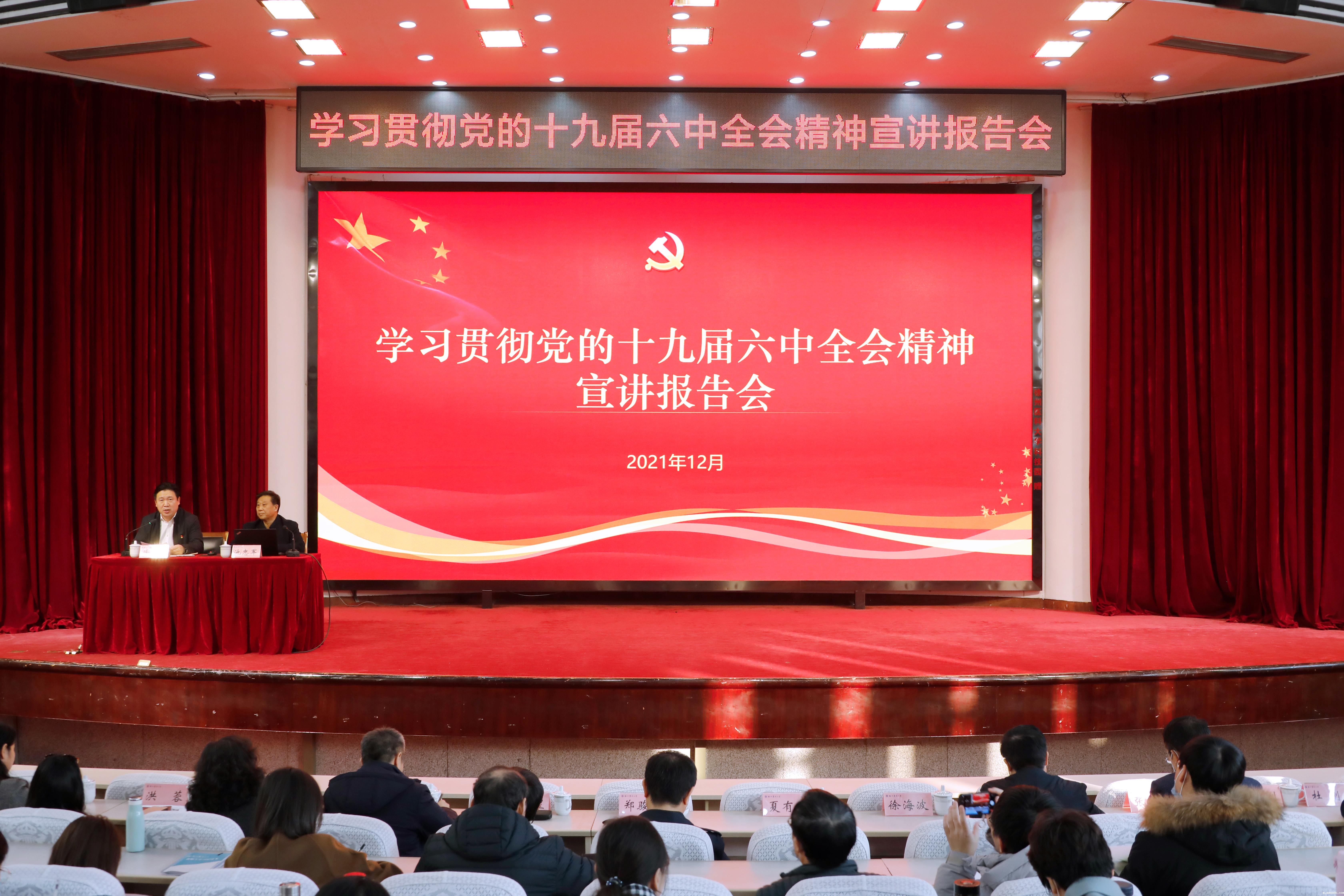 为深入学习贯彻党的十九届六中全会精神,进一步推动全会精神走深走实,根据省委、市委统一部署,12月22日下午,我校在主校区学术报告厅举行学习贯彻党的十九届六中全会精神宣讲报告会。省委宣讲团成员、徐州市委宣讲团成员、中国矿业大学马克思主义学院院长池忠军教授作宣讲报告。校党委副书记、副校长徐海波主持报告会。