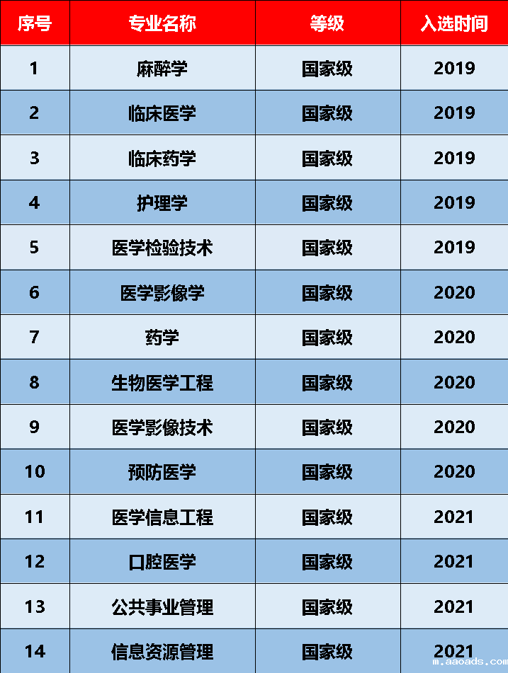 近日,教育部公布了2021年度国家级和省级一流本科专业建设点名单,我校医学信息工程、口腔医学、公共事业管理和信息资源管理4个专业入选国家级一流本科专业建设点。