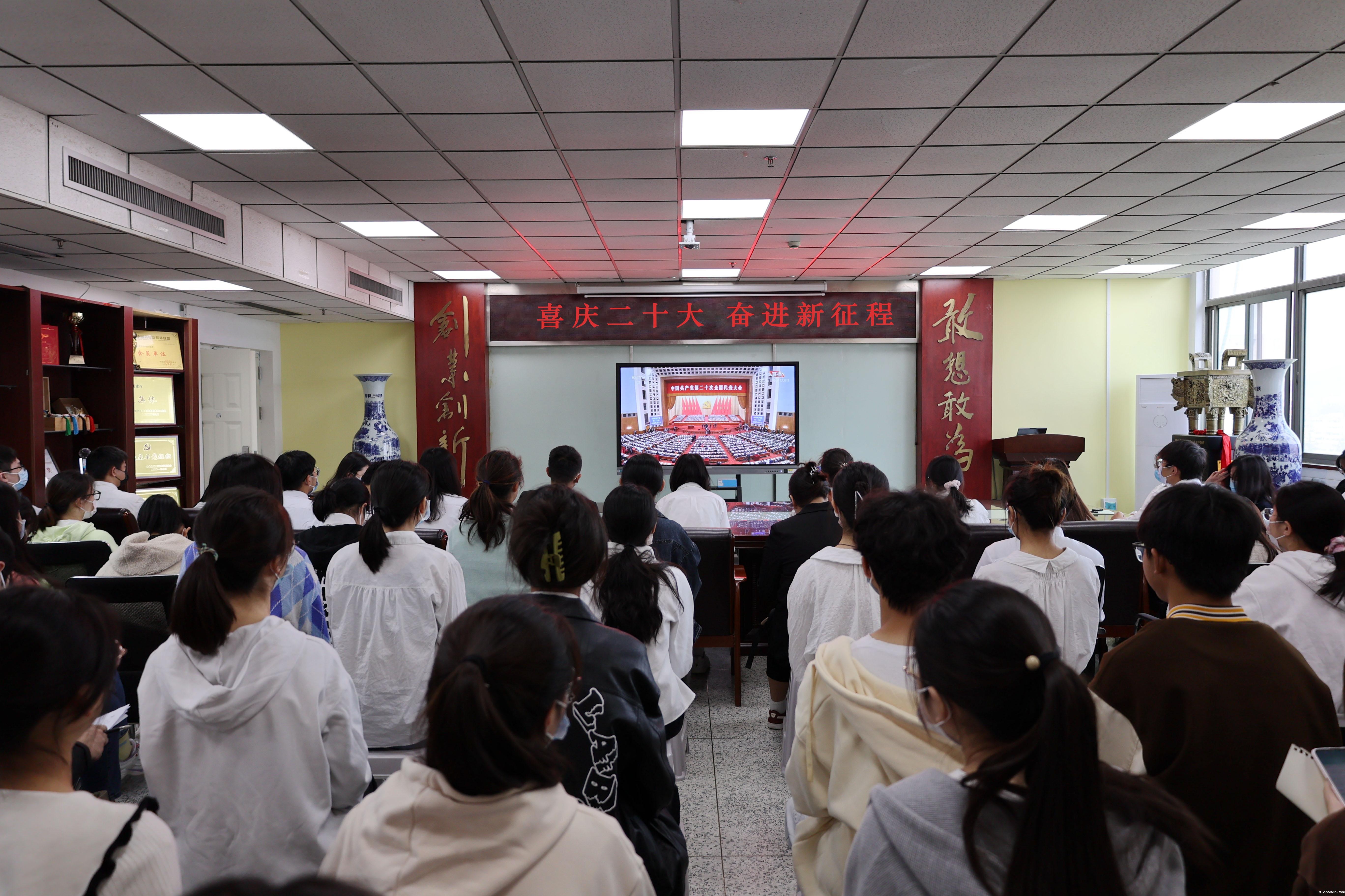 我校在学术报告厅组织师生集中收看开幕会直播,校领导、中层干部,马克思主义学院教师、辅导员、黄大年式教师团队代表,学生党员、入党积极分子、青马工程学员代表现场收看。校团委、后勤管理处、各二级学院、直属附属医院分别组织人员集中收看二十大开幕会盛况,广大师生通过电视、网络、新媒体等途径,积极收听收看开幕会直播。