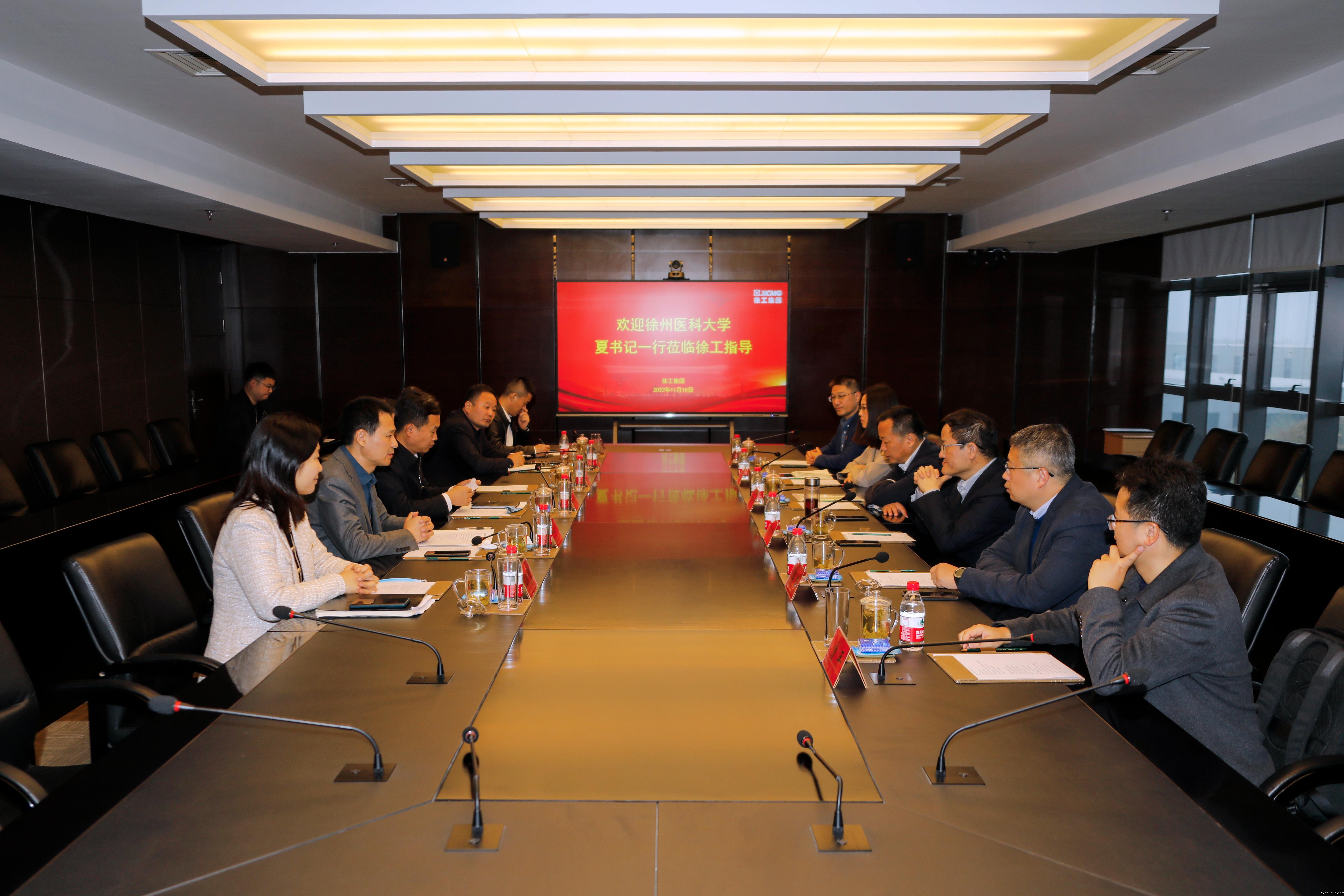 孙雷代表徐工集团对夏有兵一行表示热烈欢迎。他在发言中对我校的办学历史、办学特色和办学成绩给予了高度的评价。他表示,徐工集团在改革发展转型的过程中需要加强校企合作,徐医在人才、师资、科技等方面的优势必将助力徐工集团的高质量发展。