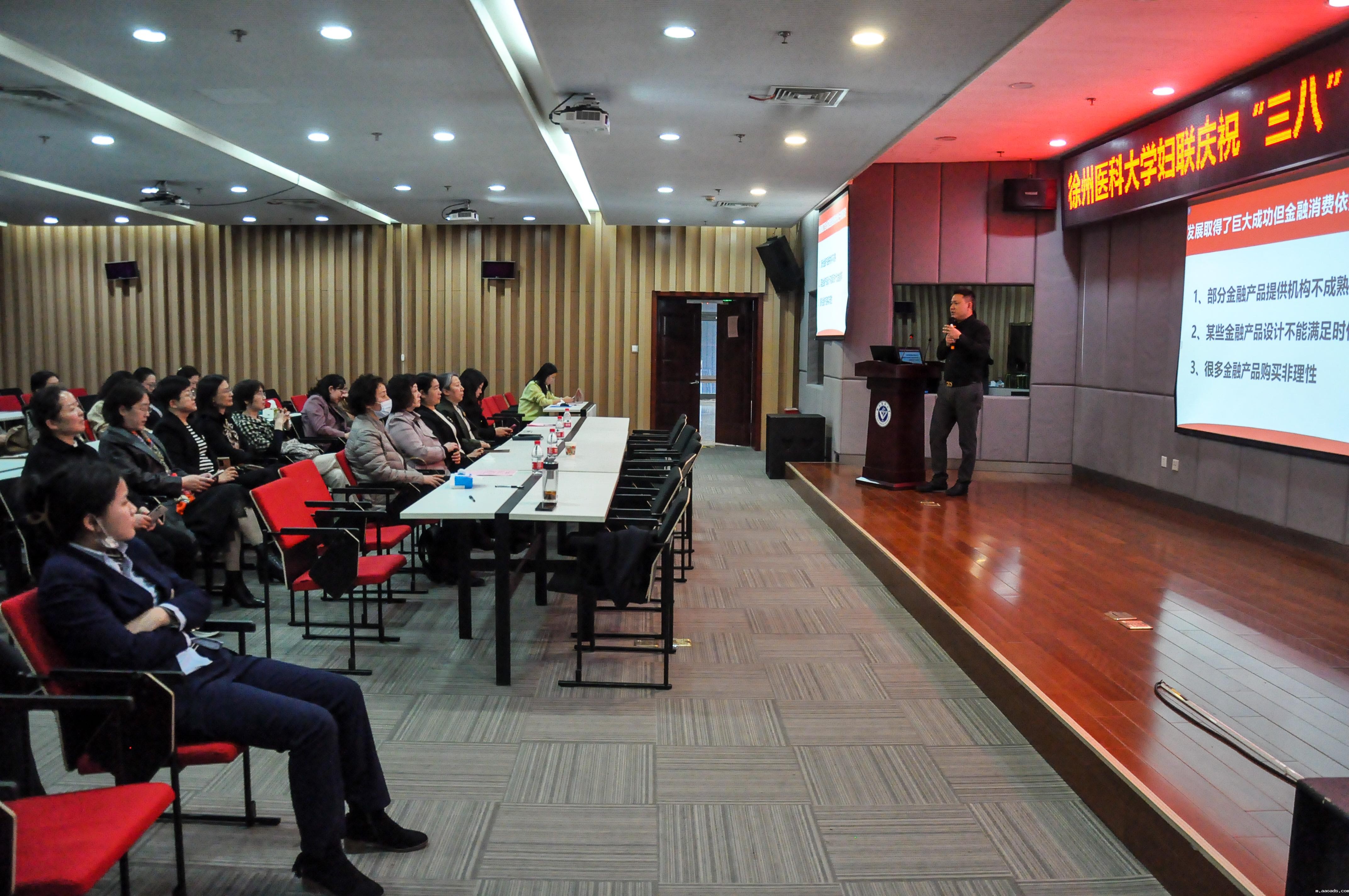 阳春三月,万象更新。在这个孕育着生机和希望的季节,3月7日下午,中国农业银行机构业务部经理王霄路和中国人寿银保部经理刘伟一行20余人应邀到我校图书馆学术报告厅联合开展庆祝“三八”国际妇女节女教授故事分享会、首饰制作和理财知识讲座等系列活动。应邀参加活动的有校妇联执委会女委员、各级女工委委员、各分工会女主席和女教授、女医师联谊会理事会成员等共计70余名女教职工。大家欢聚一堂,共庆节日。活动由校女工委员会副主任周文清主持。