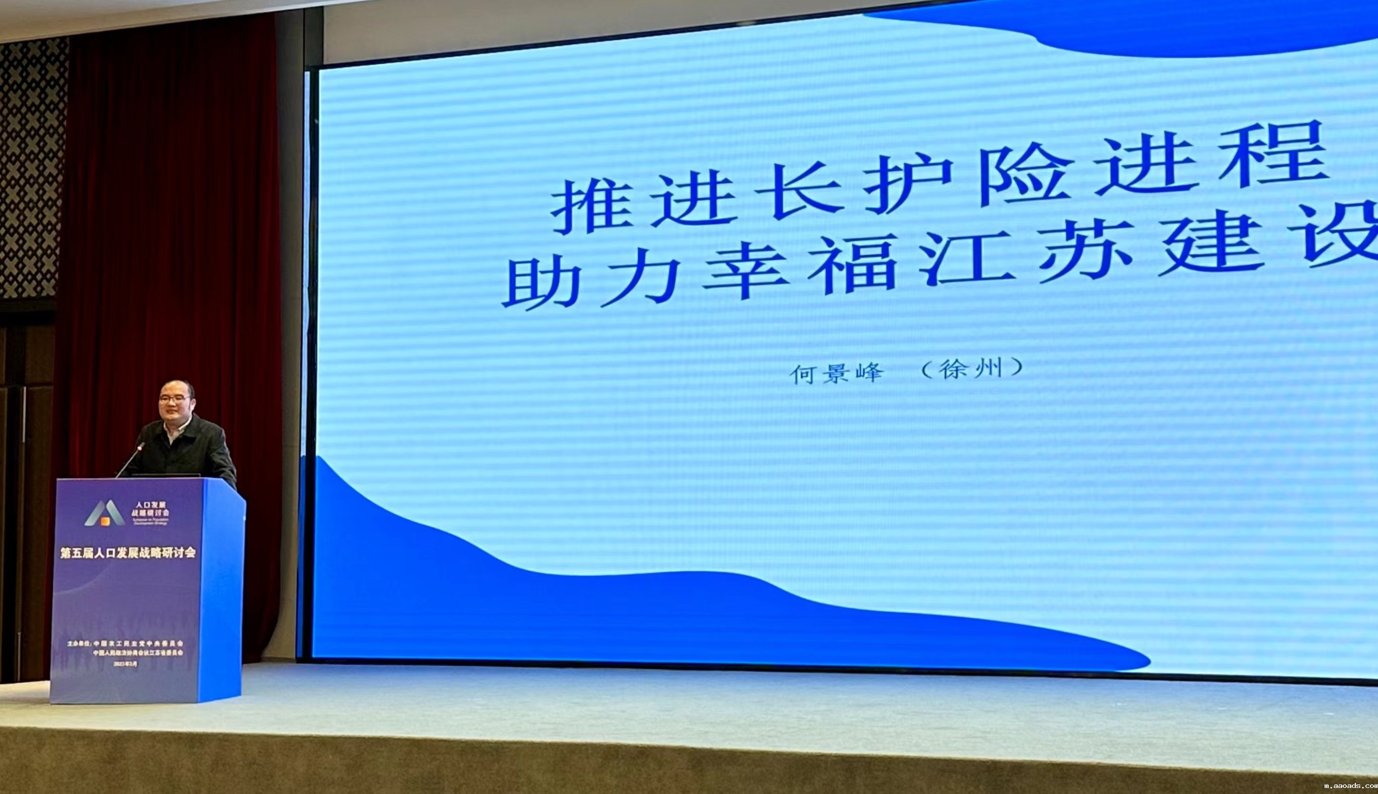 全国政协副主席、农工党中央常务副主席杨震出席开幕式并讲话。江苏省政协党组书记、主席张义珍致辞。中国社会科学院国家高端智库首席专家、学部委员蔡昉,江苏省人民政府党组成员、副省长徐缨,国家卫健委老龄健康司司长王海东,中国人口学会会长翟振武作主旨演讲。全国政协副秘书长、农工党中央专职副主席王路主持开幕式。