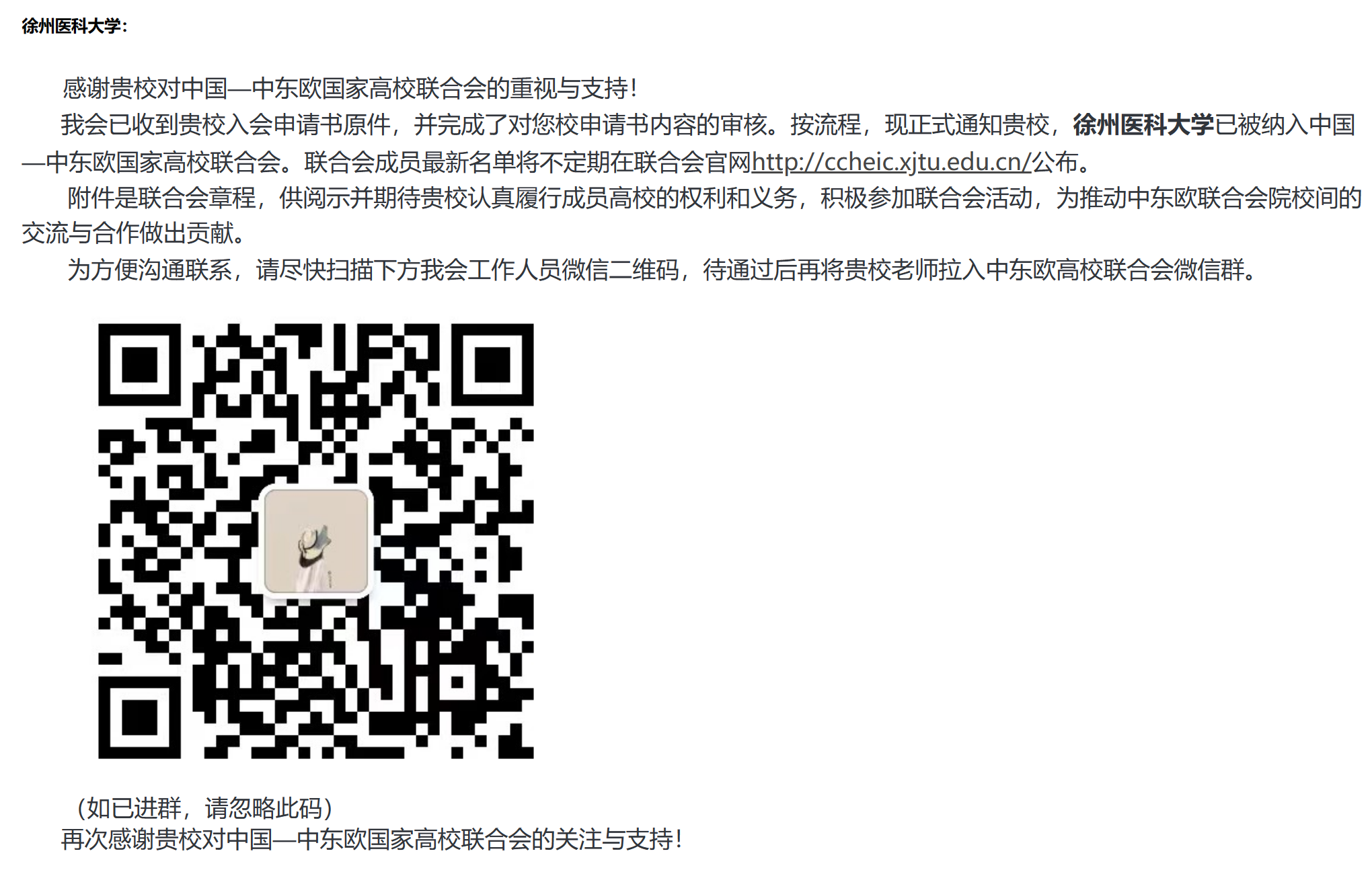 中国-中东欧国家高校联合会(China-CEEC Higher Education Institutions Consortium)成立于2014年,是教育部主导的中东欧人文交流机制的重要组成部分。联合会旨在通过搭建中国与中东欧国家高校间的合作伙伴关系,整合与共享资源,推动本国教育的发展。目前,联合会中东欧国家高校有37所,中方成员高校近300所,其中独立设置的医学院校10所,我校是省内第一所,也是目前唯一一所加入联合会的医科院校。