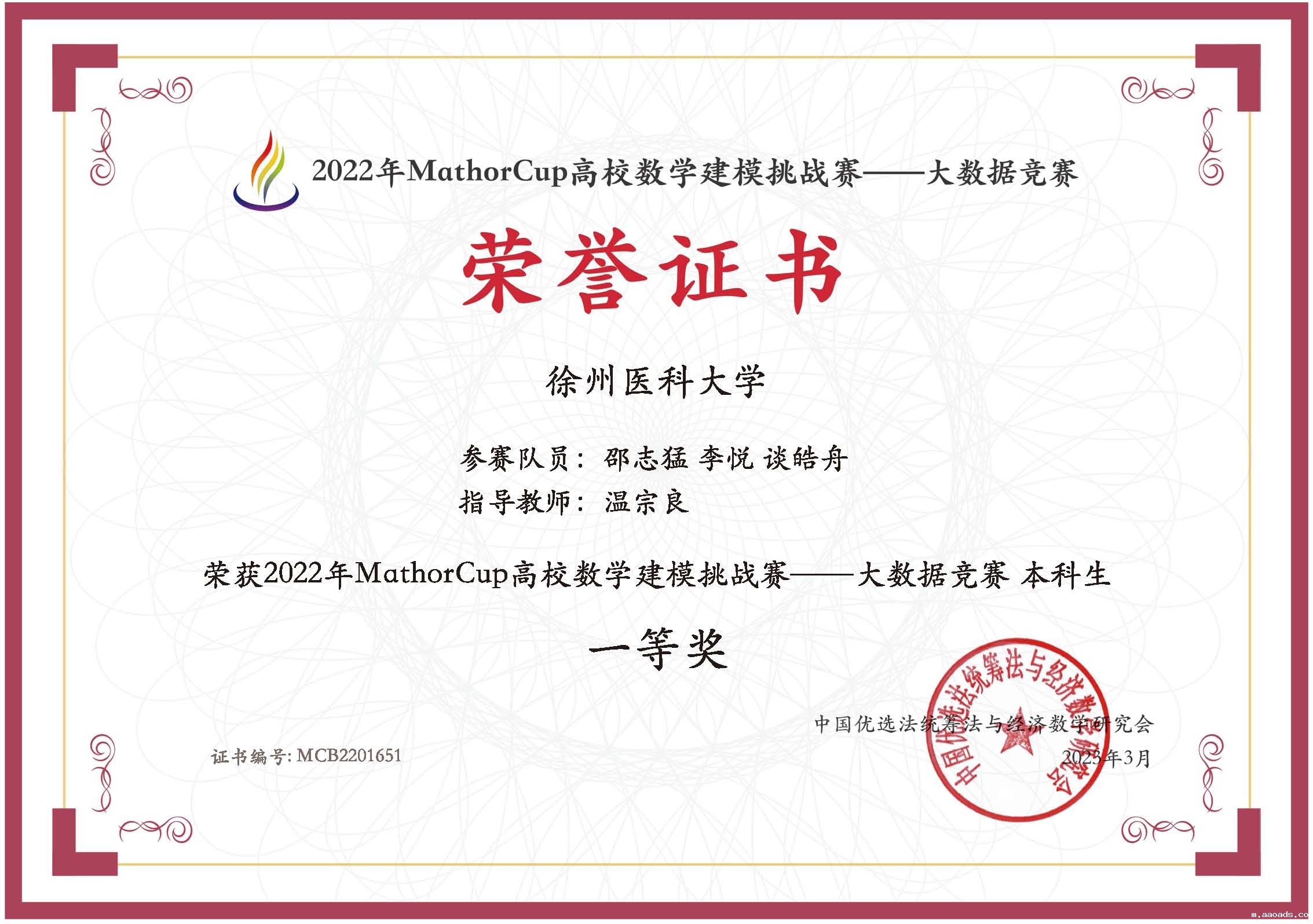 近日,2022年第三届MathorCup高校数学建模挑战赛大数据竞赛获奖名单揭晓,我校学子表现优异,获得一等奖2项(本科生组和研究生组各1项)、二等奖2项、三等奖5项;我校被评为优秀组织单位。这是我校学子在此赛项取得的最好成绩,也是医药类院校中的最好成绩。