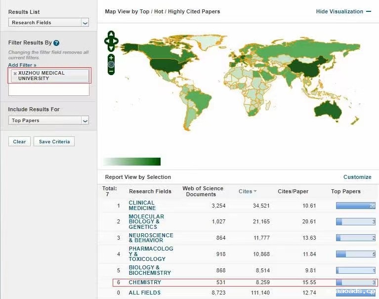 ESI(Essential Science Indicators,基本科学指标数据库)是基于Web of Science(SCIE/SSCI)所收录的全球12000多种学术期刊文献记录而建立的计量分析数据库,分为22个学科领域,对过去十年科研机构产出论文及其引用情况进行统计和比较,一定程度反映机构所在学科的学术影响力。