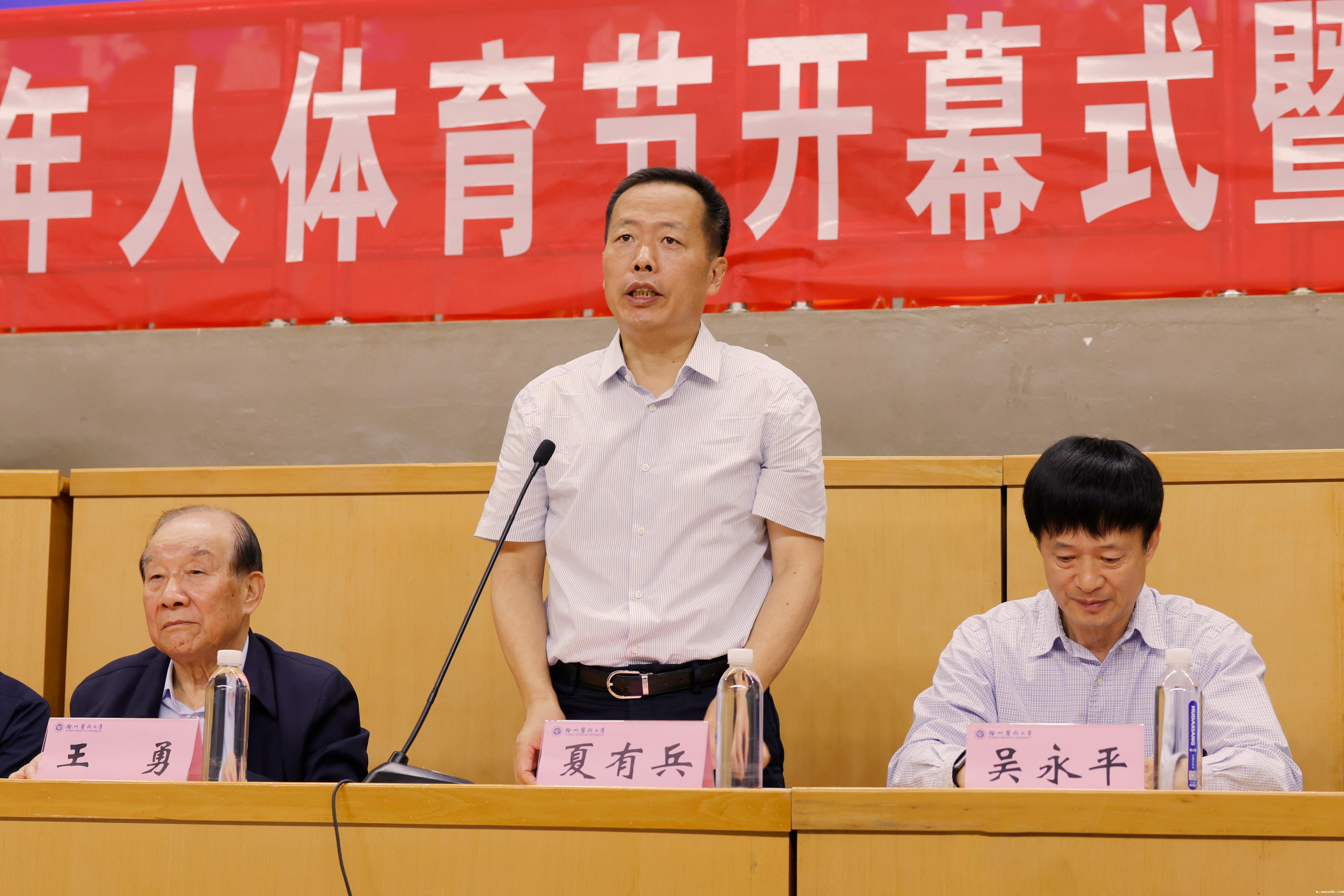 夏有兵讲话并宣布2023年老年人体育节暨第四届老年趣味运动会开幕。他代表学校党委和行政向出席本次活动的各位领导、嘉宾和各代表队表示热烈的欢迎,向长期在老年体育运动事业中无私奉献的各位老同志表示崇高的敬意,向参加运动会的全体组委会竞赛员、裁判员、运动员,致以亲切的问候和美好的祝愿。他强调,老年人是我们党和国家的宝贵财富,老同志们在革命建设和改革开放的各个历史阶段奉献了自己的青春和力量,建立了不朽的业绩,作出了很大的贡献,为老同志的幸福晚年和健康长寿创造良好的环境和条件、让老同志的生活更舒心更幸福,是我们义不容辞的责任和义务。他表示,学校及直属附院老年体协自成立以来,坚持以人为本,秉持“开放、共享、融合、创新”理念,着眼于老年体育高质量发展,各项活动有声有色、亮点纷呈,受到广大老年朋友的喜爱和肯定,为徐州老年体育事业持续稳定、快速发展起到了重要的推动作用,为建设健康中国、促进全民健身工作作出了积极贡献。他指出,今年是全党全国深入学习宣传贯彻党的二十大精神的开局之年,也是学校加快实施“十四五”事业发展规划、纵深推进高质量发展的关键一年,校老年体协举办此次活动,充分展现老年体育健身的丰硕成果、老年人的康乐风采。
