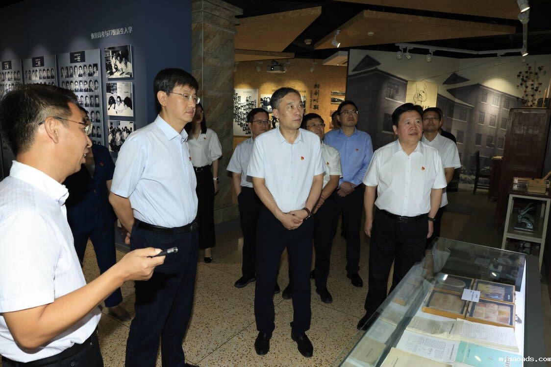 校中心组成员首先前往校史馆开展现场学习。档案(校史)馆馆长焦勇讲解学校办学历史和发展历程,全体成员详细观看了解校史,认真听取讲解,共同回望风雨历程,汲取徐医精神力量。祝木伟在参观时指出,要做好校史馆更新和校史口述史工作,发扬传承好第一代徐医人的优良传统。他强调,要从学校的办学史、创业史中受启发,要结合“培养什么样的人,如何培养人,为谁培养人”再思考,围绕“办什么样的医科大学、怎样办好医科大学”,叩问办学初心、牢记育人使命、关照把握现实,谋划未来发展。