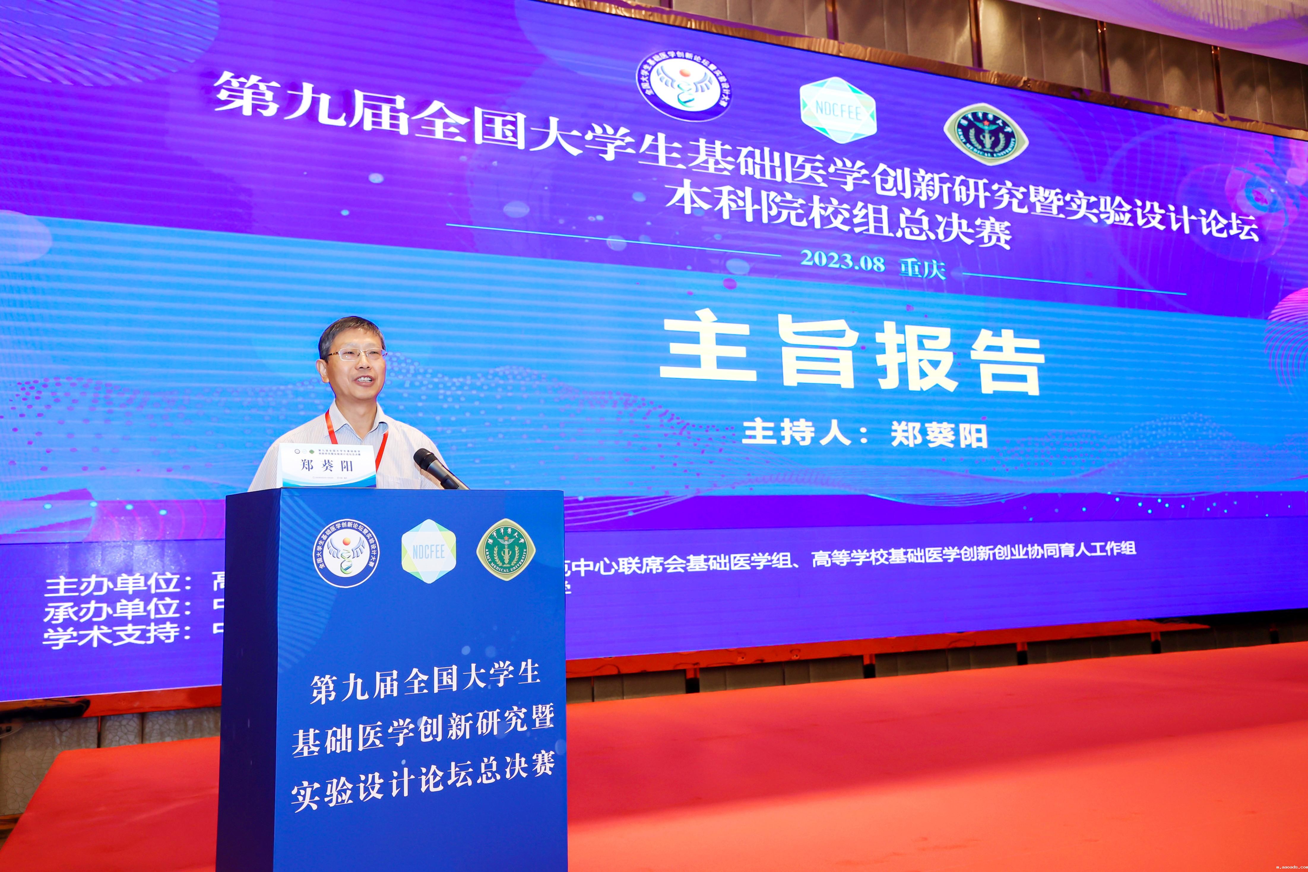8月25日-28日,由高等学校国家级实验教学示范中心联席会基础医学组、高等学校基础医学创新创业协同育人工作组主办,陆军军医大学承办的第九届全国大学生基础医学创新研究暨实验设计论坛总决赛在重庆落幕。本届大赛覆盖全国31个省市区,总决赛参赛师生近2300余人。经过前期校内选拔、东部赛区复赛,我校共6个项目入围总决赛,获金奖1项,银奖5项,同时连续三届荣获论坛本科组高校优秀组织奖。我校基础医学国家级实验教学示范中心主任郑葵阳教授带队参赛并在大会论坛中担任主旨报告主持人。