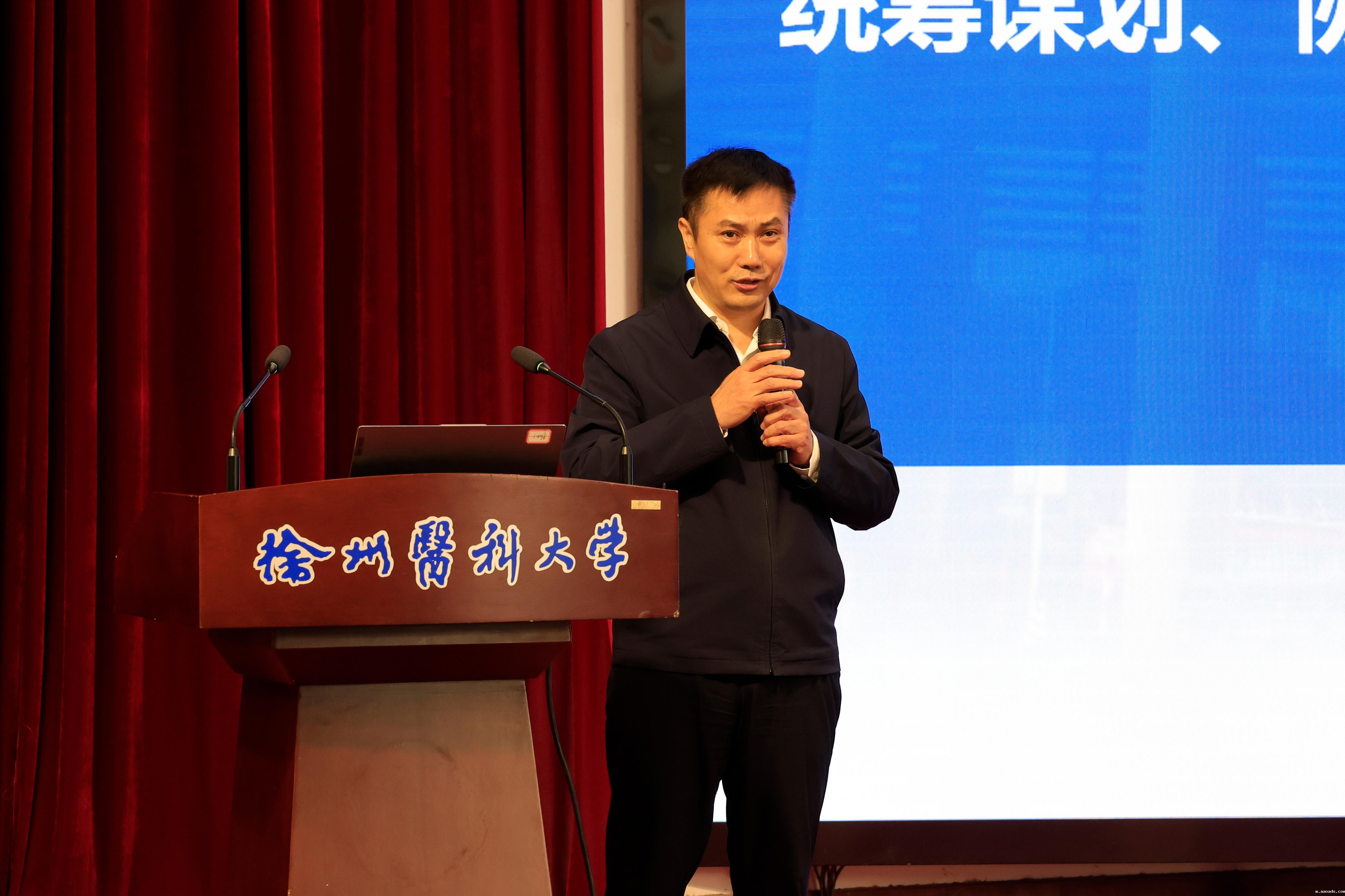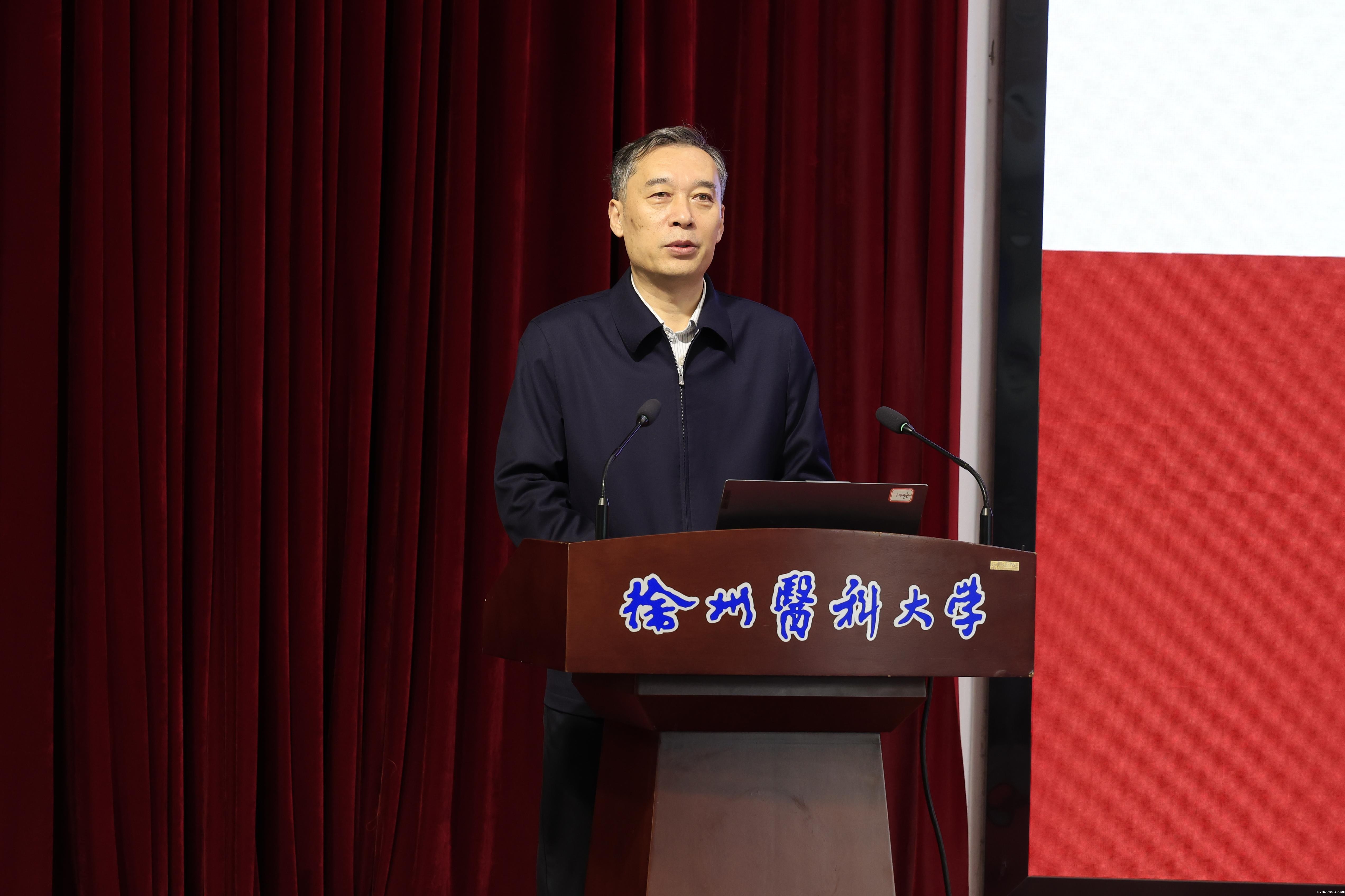 郭栋以“谋势求变、创新发展,构建高质量本科教育教学体系”为题,分析了当前本科教育的形势、不足与差距、任务与措施。他阐述了高等教育发展的内涵和趋势,指出了学校在专业、课程、教学成果建设方面存在的压力与挑战。他指出,培养高质量创新人才是我们的目标,构建学校高质量教育体系必须要强基础,高质量通过新一轮本科评估与临床医学类专业认证,不断提高毕业生执业医师资格考试一次性通过率;必须要提质量,努力实现省优秀基层教学组织和教创赛/青教赛建设的新目标;必须要亮特色,努力在建设国家级现代产业学院、工信部“专精特新”产业学院和国家级教学成果奖上取得新突破。