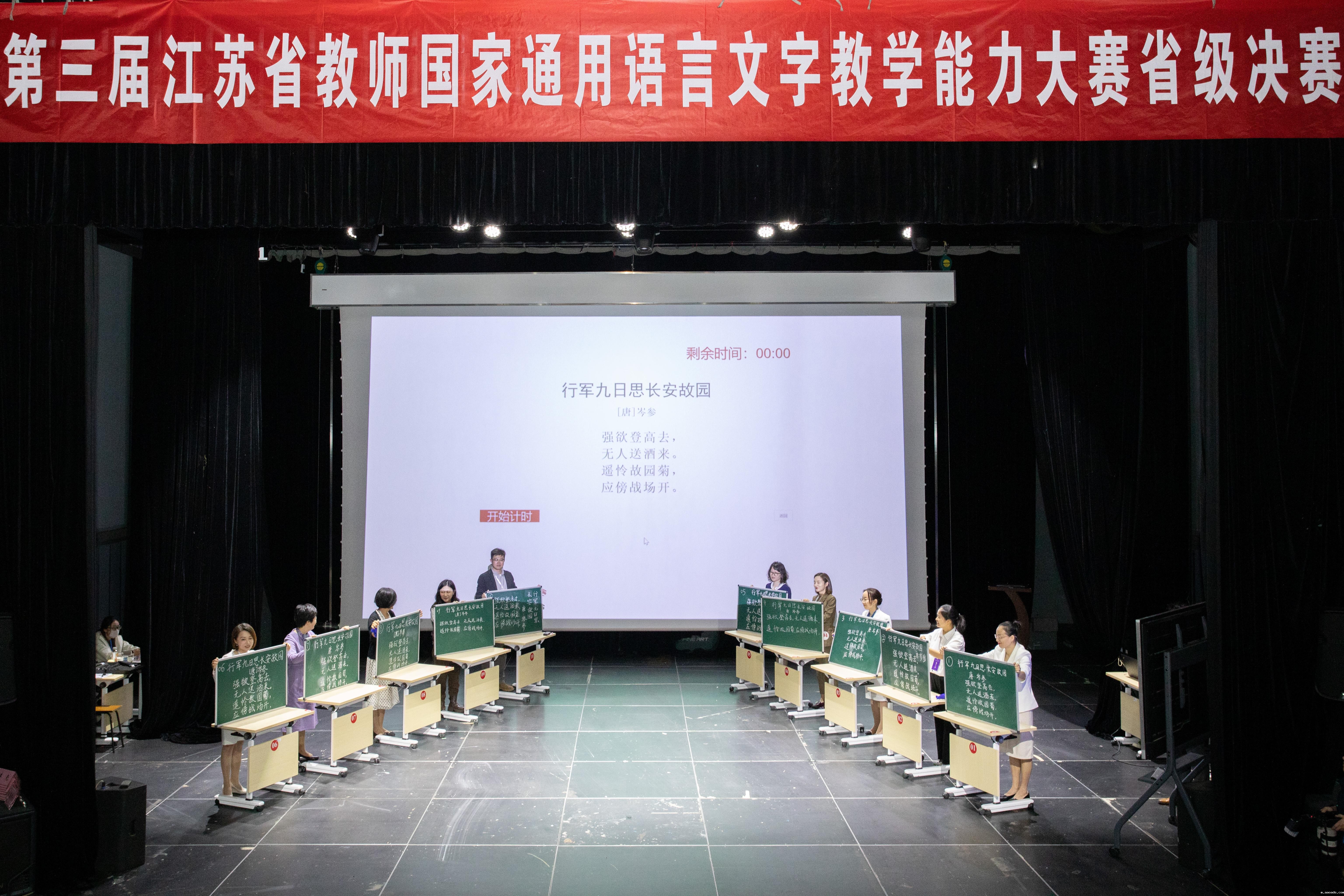 本次比赛由江苏省语委、江苏省教育厅等单位联合主办,共分为学前教师组、小学教师组、中学教师组、大学教师组和大学生组5个组别,总决赛分板书书写、经典篇目诵读讲解、诗词经典知识竞答3个环节。大赛以“书香新时代,‘典’亮新征程”为主题,旨在引导全体教师深刻理解中国语言文字的文化内涵,切实增强自觉落实国家通用语言文字作为教育教学基本用语用字的法定要求,积极挖掘优秀传统文化的时代价值,推动国家通用语言文字高质量推广普及。