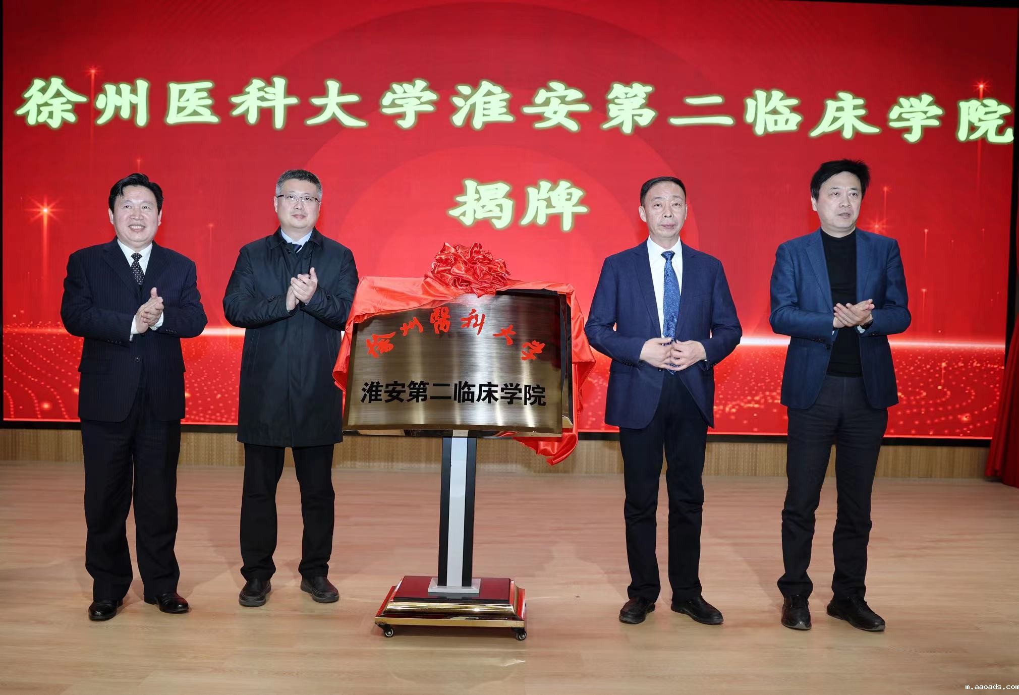 1月15日下午,伟德客户端下载安装手机版淮安第二临床学院揭牌仪式在淮安市第三人民医院学术报告厅举行。党委副书记、副校长徐海波,党委常委、副校长郭栋,淮安市卫健委党委书记、主任郑东辉,市三院党委书记范智勇,市三院党委副书记、院长秦孝峰等出席揭牌仪式。