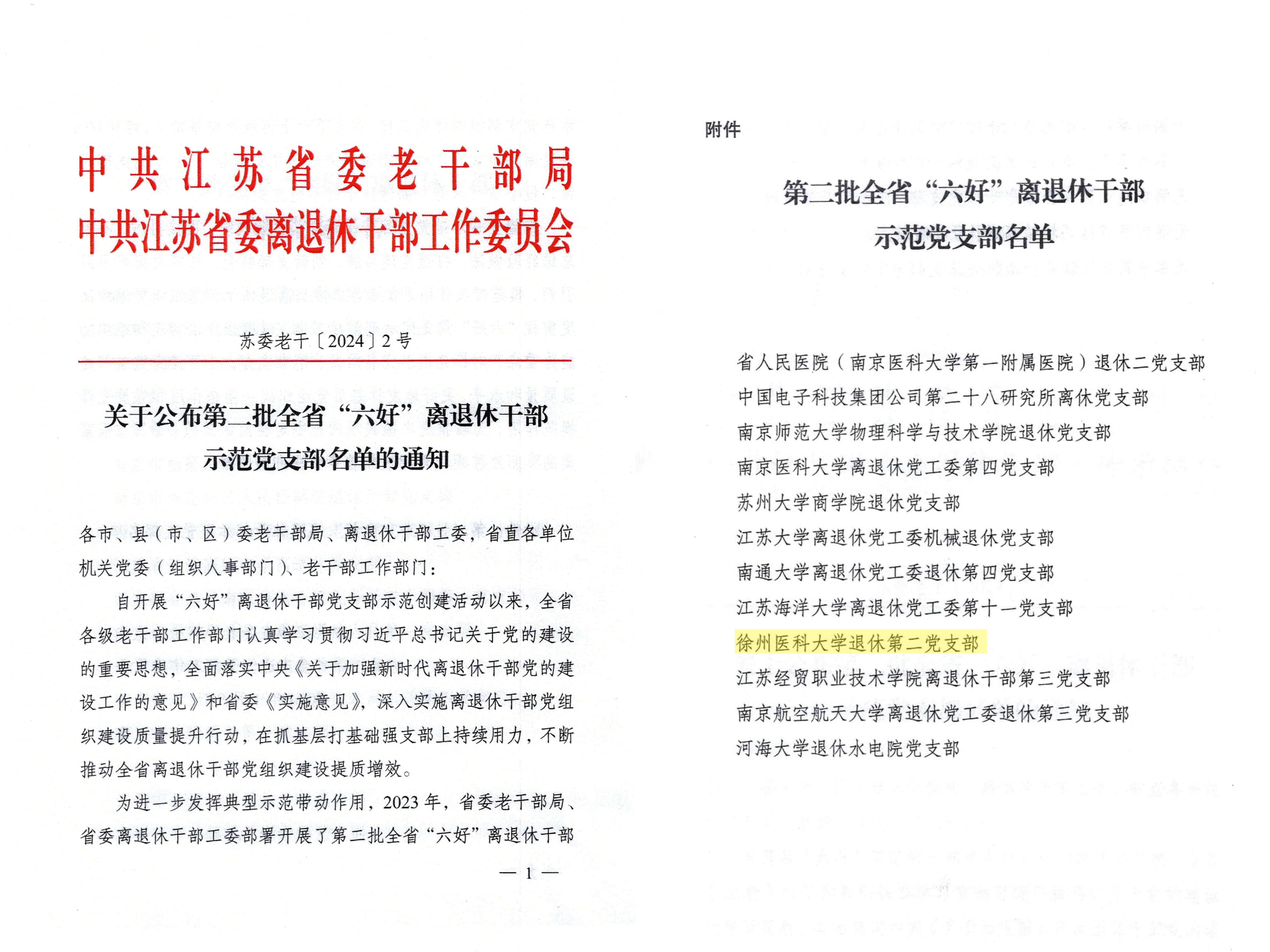 近日,省委老干部局、省委离退休干部工委公布第二批全省“六好”离退休干部示范党支部名单,我校退休第二党支部名列其中。