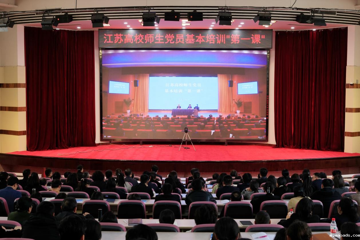 3月30日下午,江苏省委教育工委组织开展江苏高校师生党员集中培训“第一课”。二十届中央委员、中央党校(国家行政学院)分管日常工作的副校(院)长谢春涛以“中国共产党与中华民族伟大复兴”为题作专题辅导。省委副书记沈莹主持。校党委书记祝木伟,党委常委、组织部部长杜刚在南京大学主课堂参加培训,校领导班子其他成员和全校5000余名师生党员通过线上直播形式参加培训。