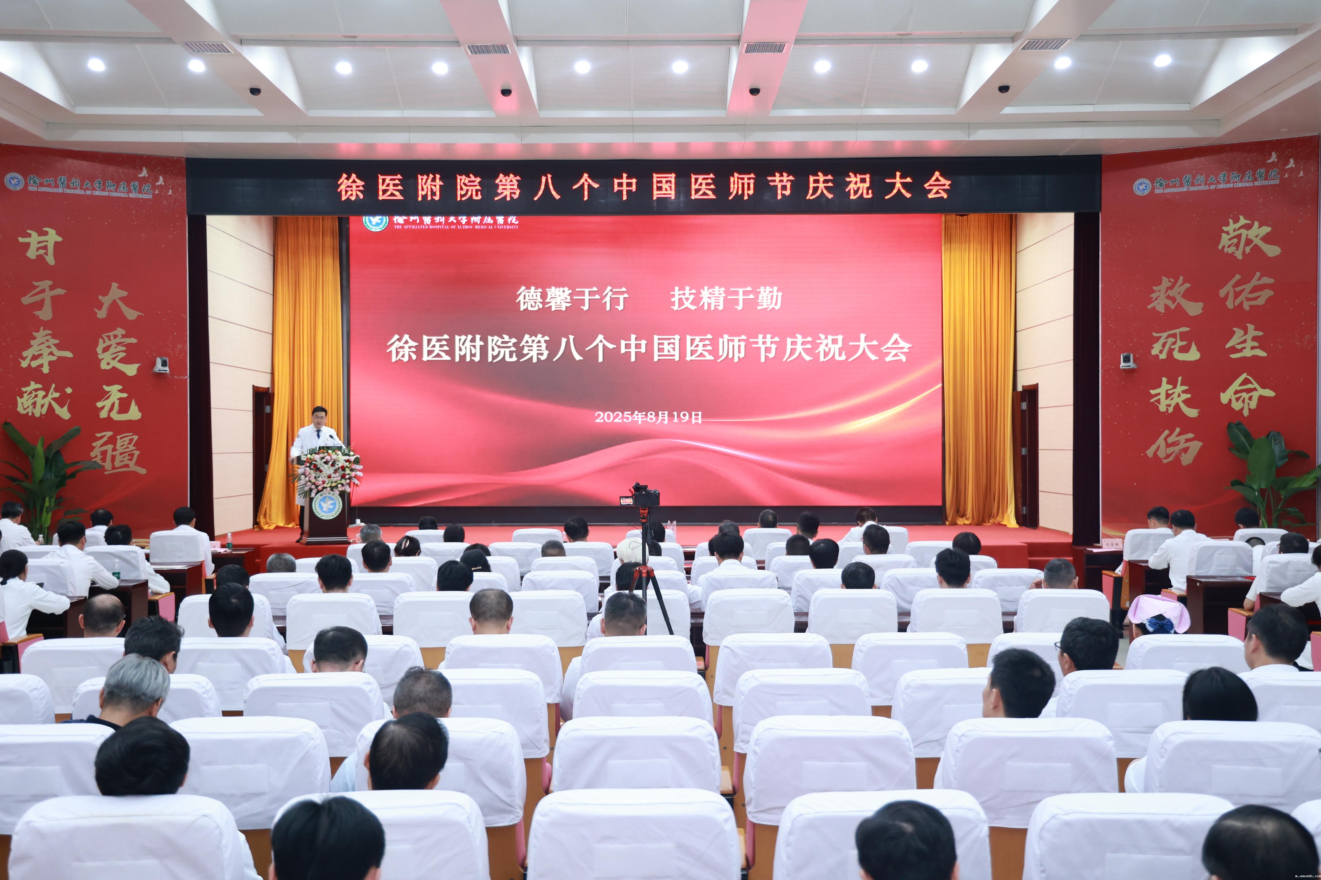 8月19日下午,徐医附院第八个中国医师节庆祝大会在第一会议室举行。今年医师节的主题是“德馨于行,技精于勤”。全体院领导,从医30周年医师和医技工作者代表,荣获各级奖项和荣誉的获奖人员和团队代表,全院各临床科室主任、病区主任、医疗团队长、医师代表,职能部门负责人、新入职医师代表等参加会议。徐医附院党委常务副书记季芳主持大会。