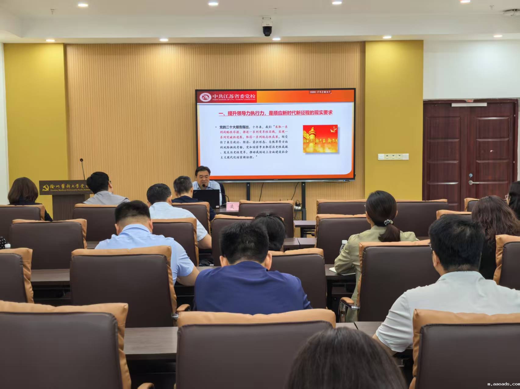 培训期间,江苏省政府研究室原副主任沈和以“新时代调查研究与报告撰写”为主题,深入阐释了调查研究的重要作用、基本要求、选题方法以及调研报告的框架结构、标题提炼、开头方式、评价标准等,为干部提升调研能力和文稿水平提供方法论指导;江苏省委党校政府研究所凌宁教授聚焦“奋进新时代 提升领导者领导力和执行力”,系统阐释新时代对干部能力的时代要求、核心要义、提升路径,从理论框架到实践路径,为干部提升领导艺术、强化执行效能指明方向;基础医学院党委书记韩红柳、第一临床医学院院长兼附属医院副院长张昊,立足自身岗位实际,结合工作案例深入分享了提升干部综合素养的理论思考与实践经验。参训干部围绕“如何加强调查研究,破解学校改革发展的难题”“如何提升岗位胜任力,促进担当作为”等主题开展分组研讨,形成专题报告,提出具体举措,切实将研讨成果转化为发展动力。