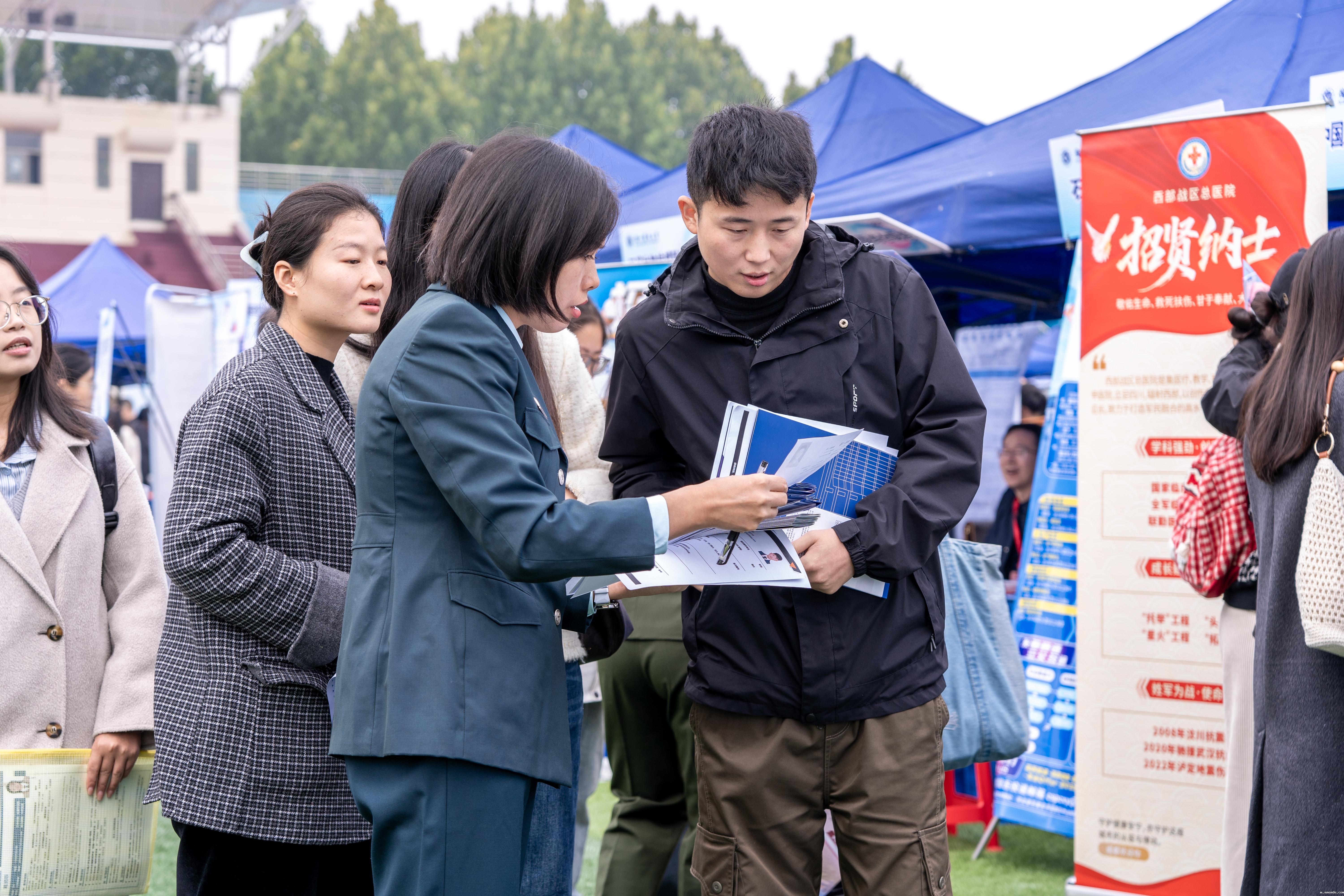 招聘会现场人头攒动、气氛热烈,吸引了来自北京、上海、天津、江苏、浙江等全国多个省市的217家优质用人单位进驻揽才,其中包括上海长征医院、天津医科大学总医院、南京鼓楼医院等知名医疗机构,以及正大天晴药业、鲁南制药等医药行业领军企业。同步举办多场小型专场招聘宣讲会,部分单位现场组织面试,实现“一站式”快速签约。本次招聘岗位涵盖本科、硕士、博士各学历层次,涉及临床、药学、护理、公卫、医技、管理等医药卫生全领域,招聘需求8000余人,吸引了校内外近万名学生现场应聘交流。