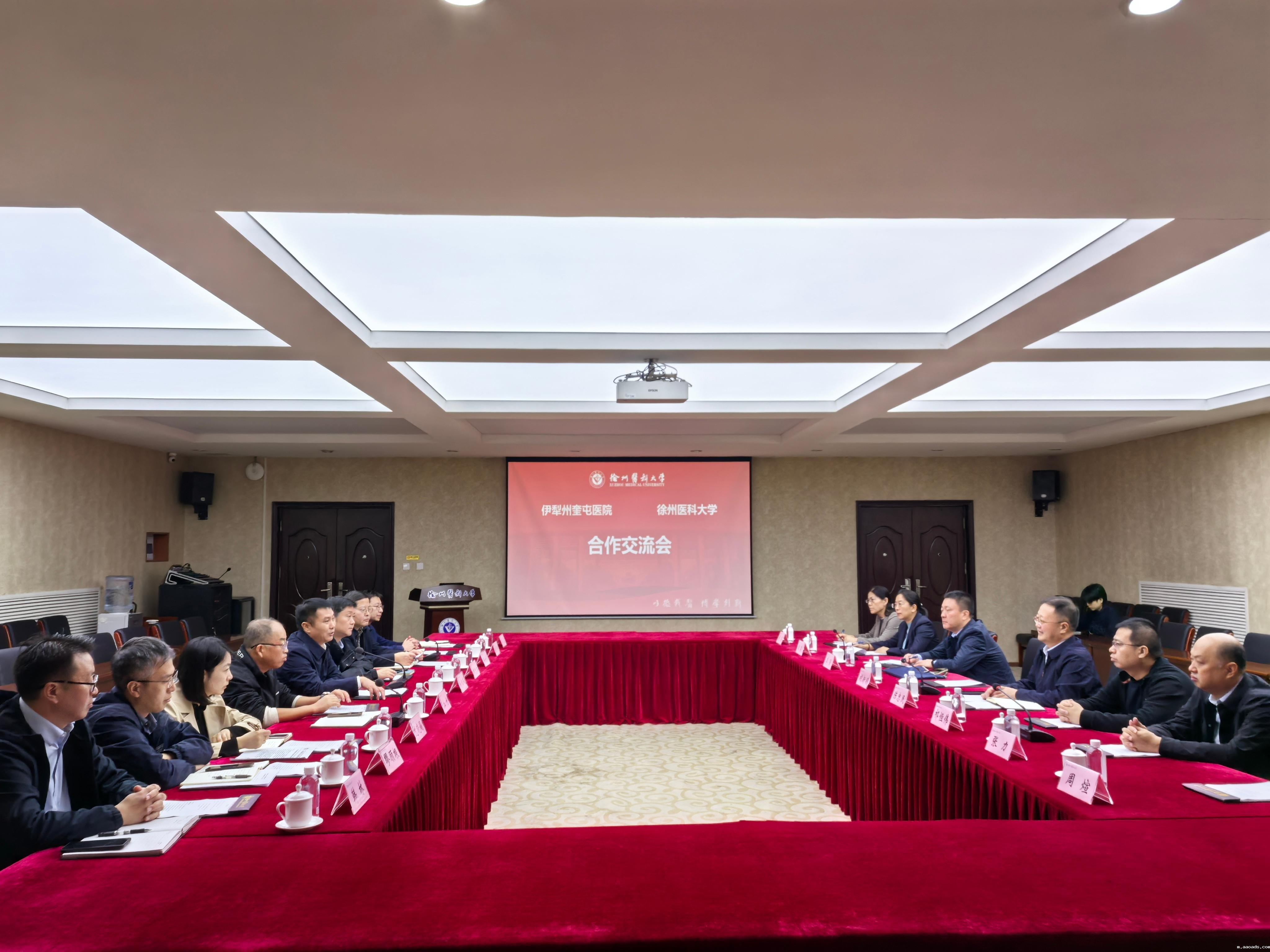 11月5日上午,伊犁哈萨克自治州奎屯医院党委书记陈忠民一行来我校洽谈交流。党委常委、副校长刘慎军主持座谈会,校长办公室、人事处、教务处、科学技术处、研究生院、合作发展处、徐医附院相关负责人参加会议。