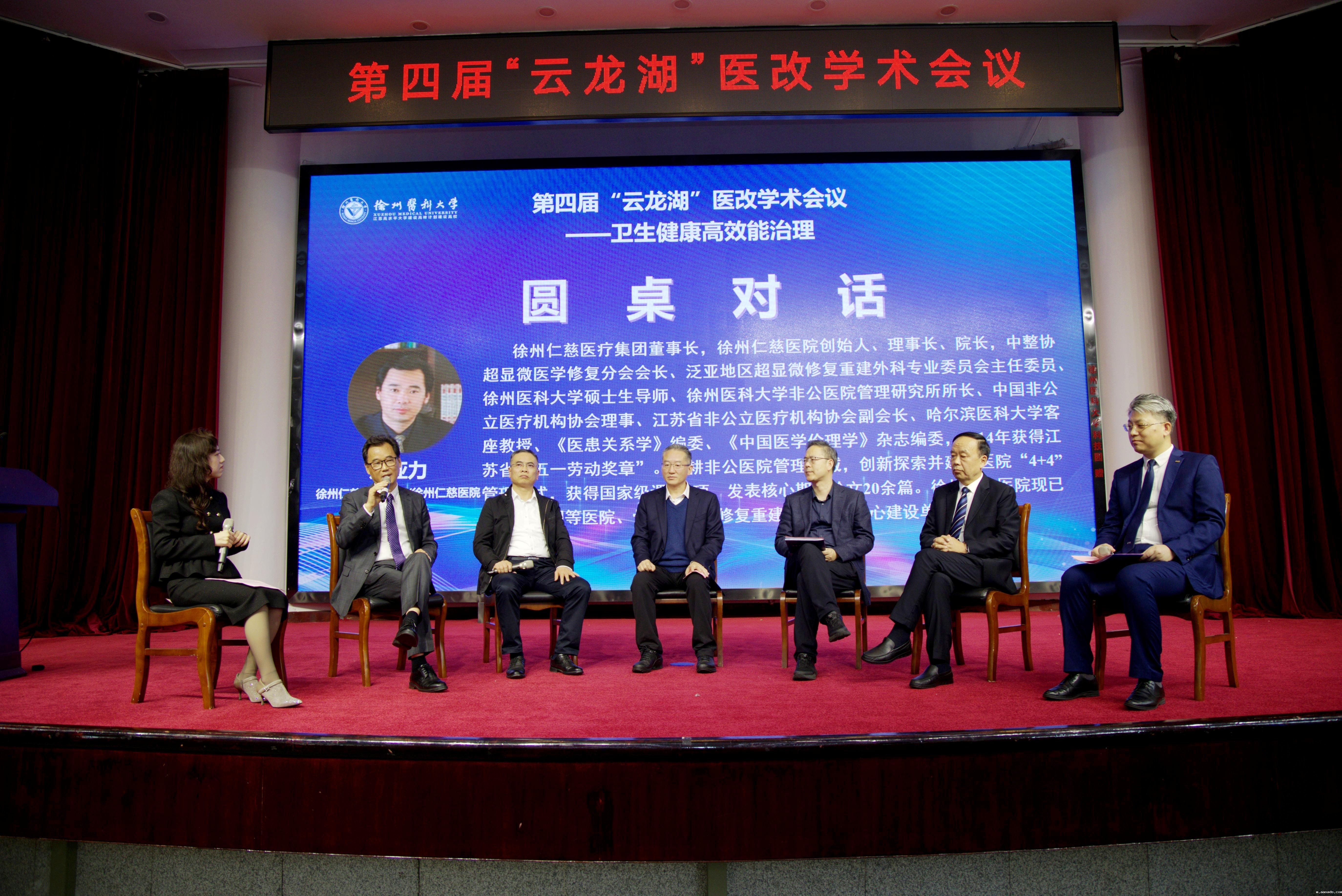 圆桌对话环节,徐医附院院长金培生、徐医二附院院长李海泉、东台人民医院院长杨爱兵、徐医附院泗洪分院院长尹忠诚、徐州仁慈医院院长宗亚力、徐州爱尔眼科医院党支部书记王瑞六位业界专家,围绕“医疗机构高效能治理”核心议题,结合各自实践经验,就公立医院治理优化、非公医疗规范发展、资源下沉路径等关键问题展开深度研讨,形成多项兼具实操性与创新性的共识建议。